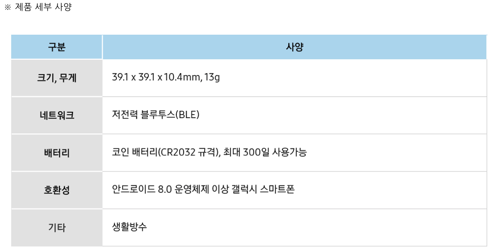 기존 삼성전자에서는 LTE 통신망을 이용하는 트랙커라는 제품을 출시한적이 있었습니다. 빠르게 위치를 추적 할 수 있는 반면에 LTE망을 이용하기 때문에 배터리 소모가 커서 자주 충전해주어야 하고 무엇보다 다달이 얼마씩 통신요금을 내야 했습니다.