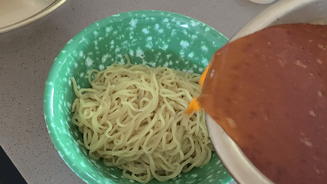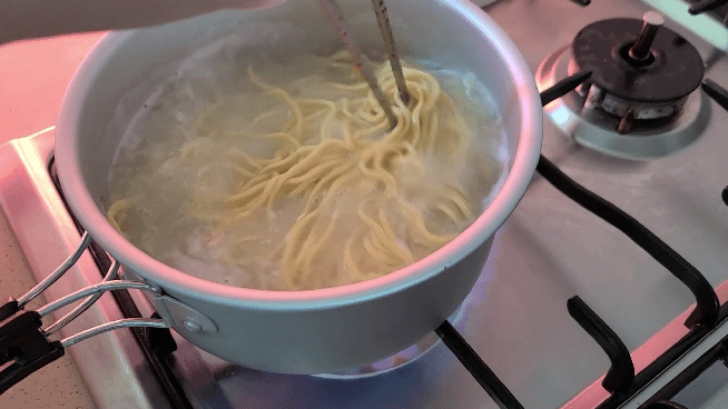 2. 면삶기 : 면 두배정도 넉넉햔 양물을 끓인 후, 끓는 물에 면을 넣고 3분정도 젓가락으로 저어가며 삶는다.