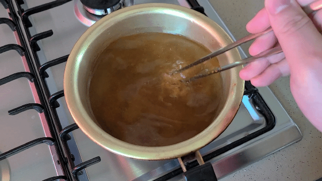 1. 육수 끓이기 : 500cc에 탄탄소스와 땅콩 소스를 모두 넣고 끓으면 센불에서 5분간 더 팔팔 끓인다.