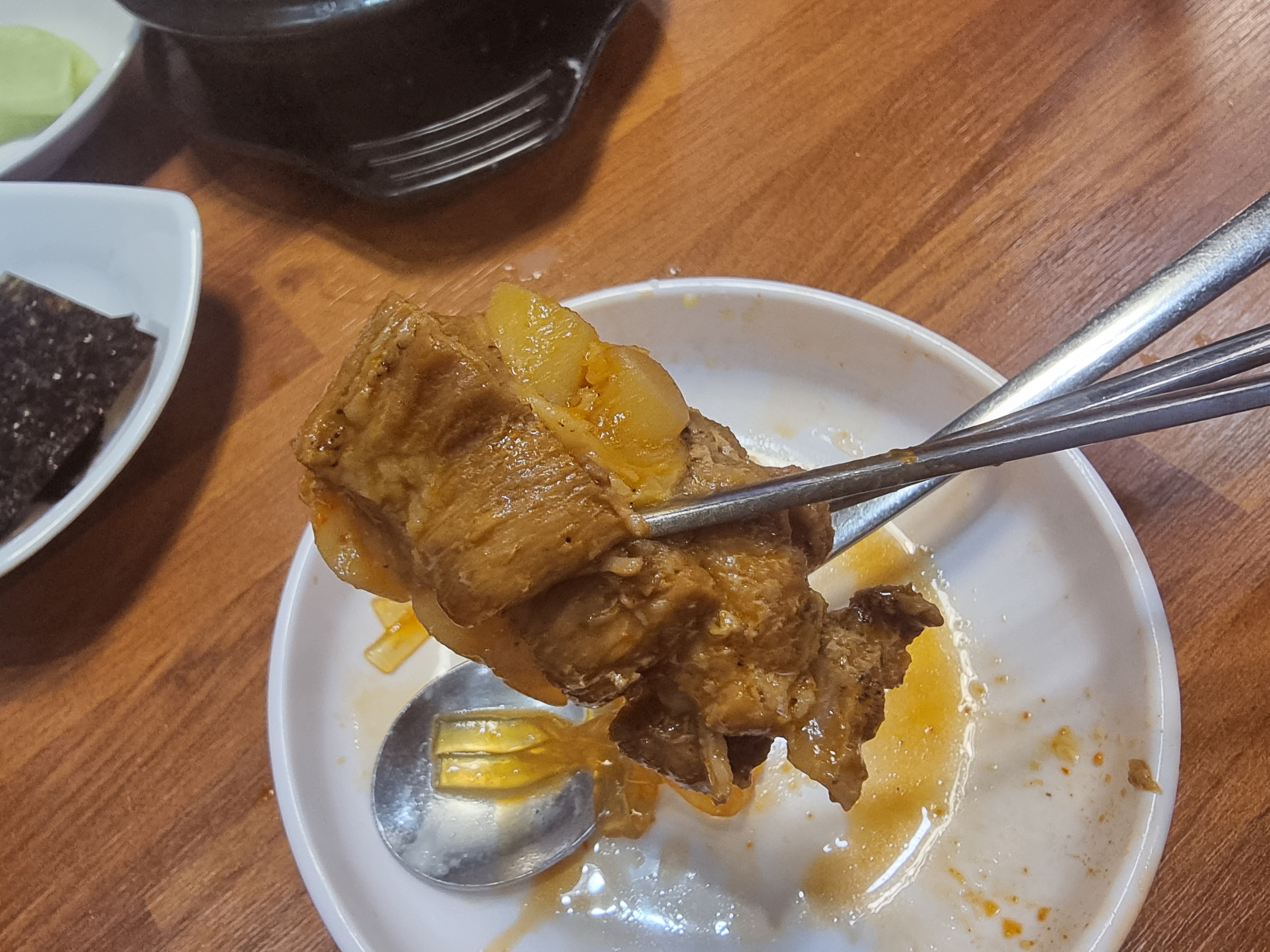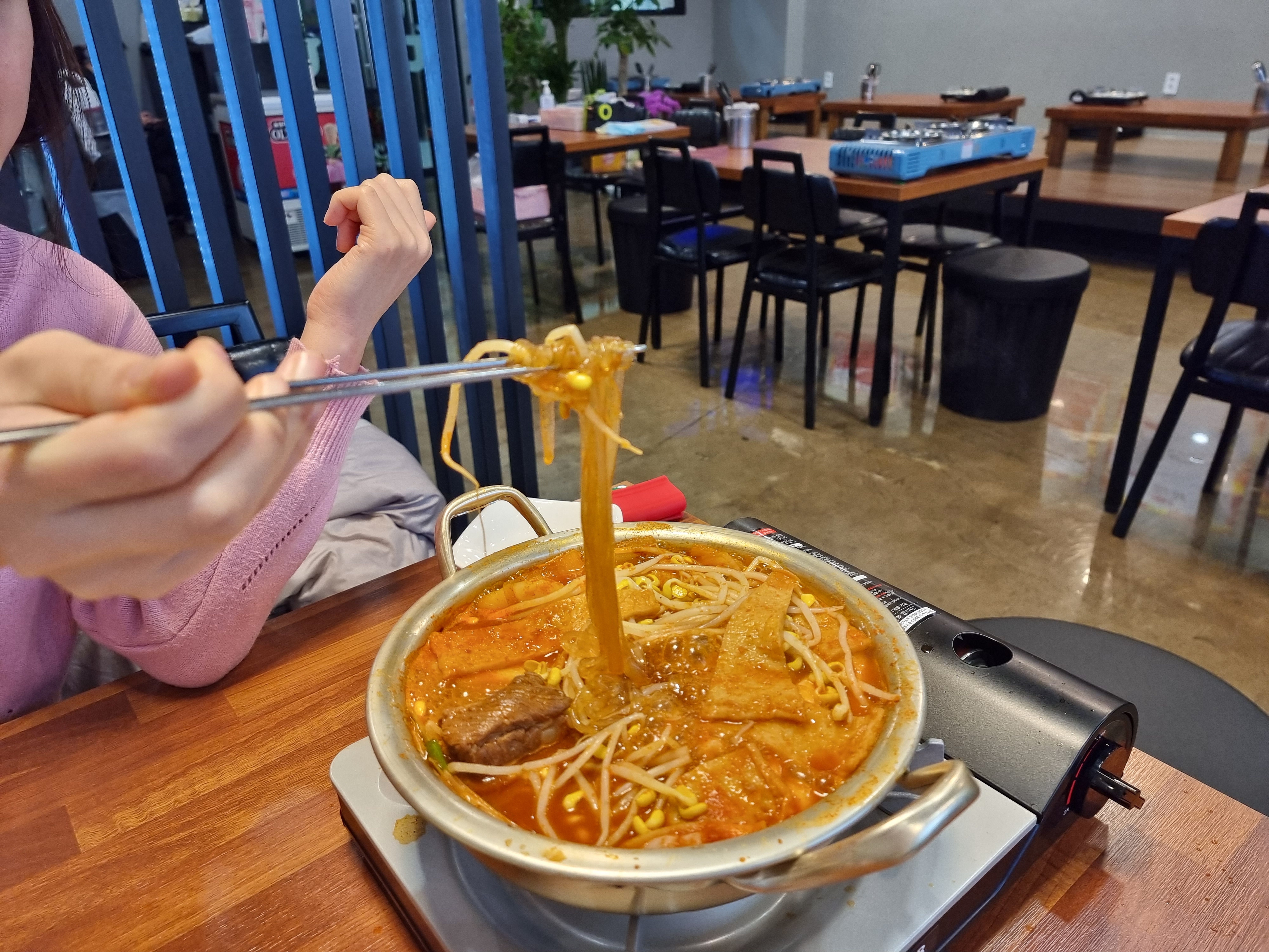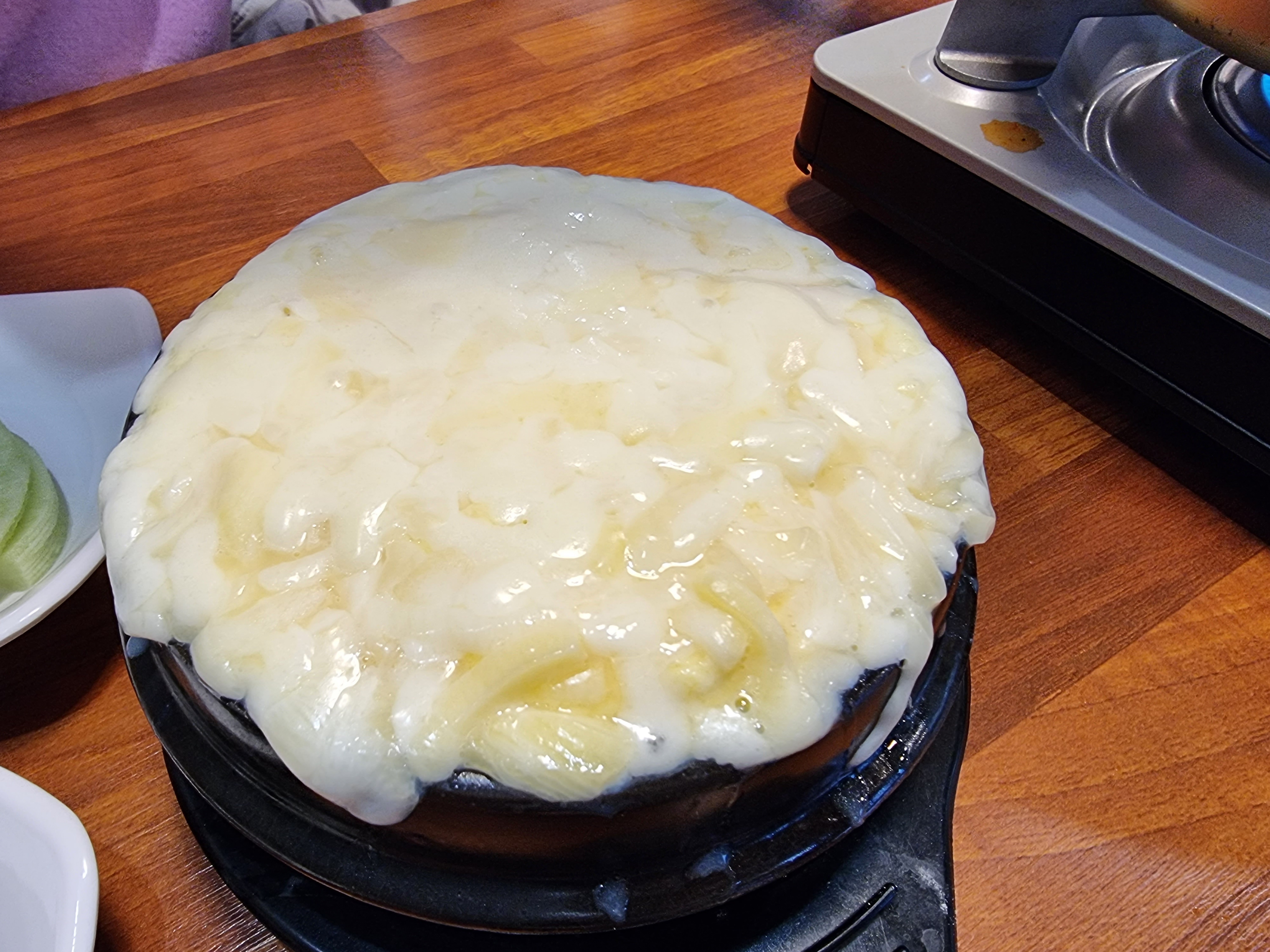 4. 매운 갈비찜이 나왔는데 고기는 이미 익혀져 있고 당면, 야채 들만 익히면 바로 먹어도 된다고 하셨어요. 치즈 계란찜도 같이 나왔는데 고소하고 쭉쭉 늘어나는게 먹는 재미가 있었습니다.