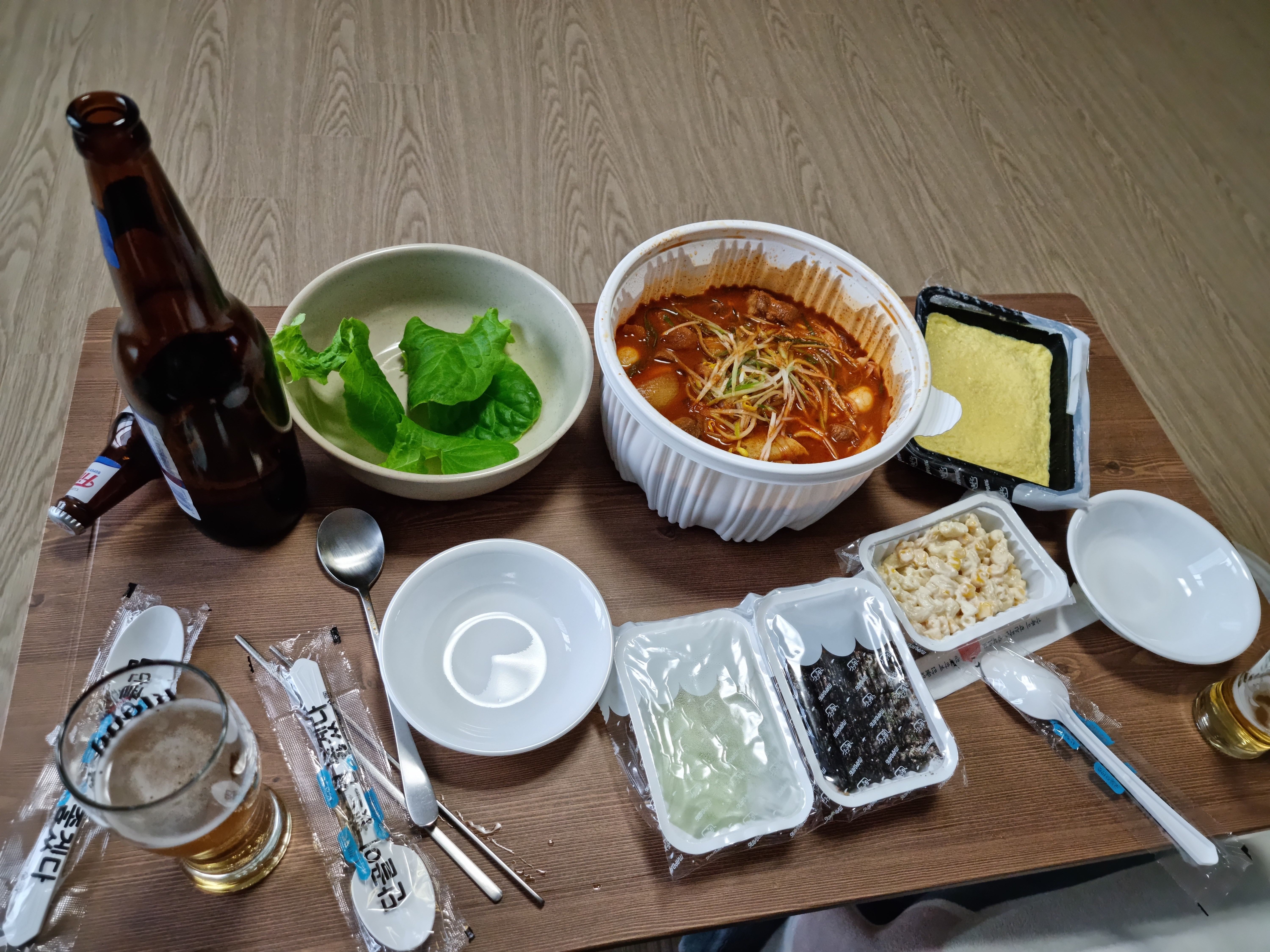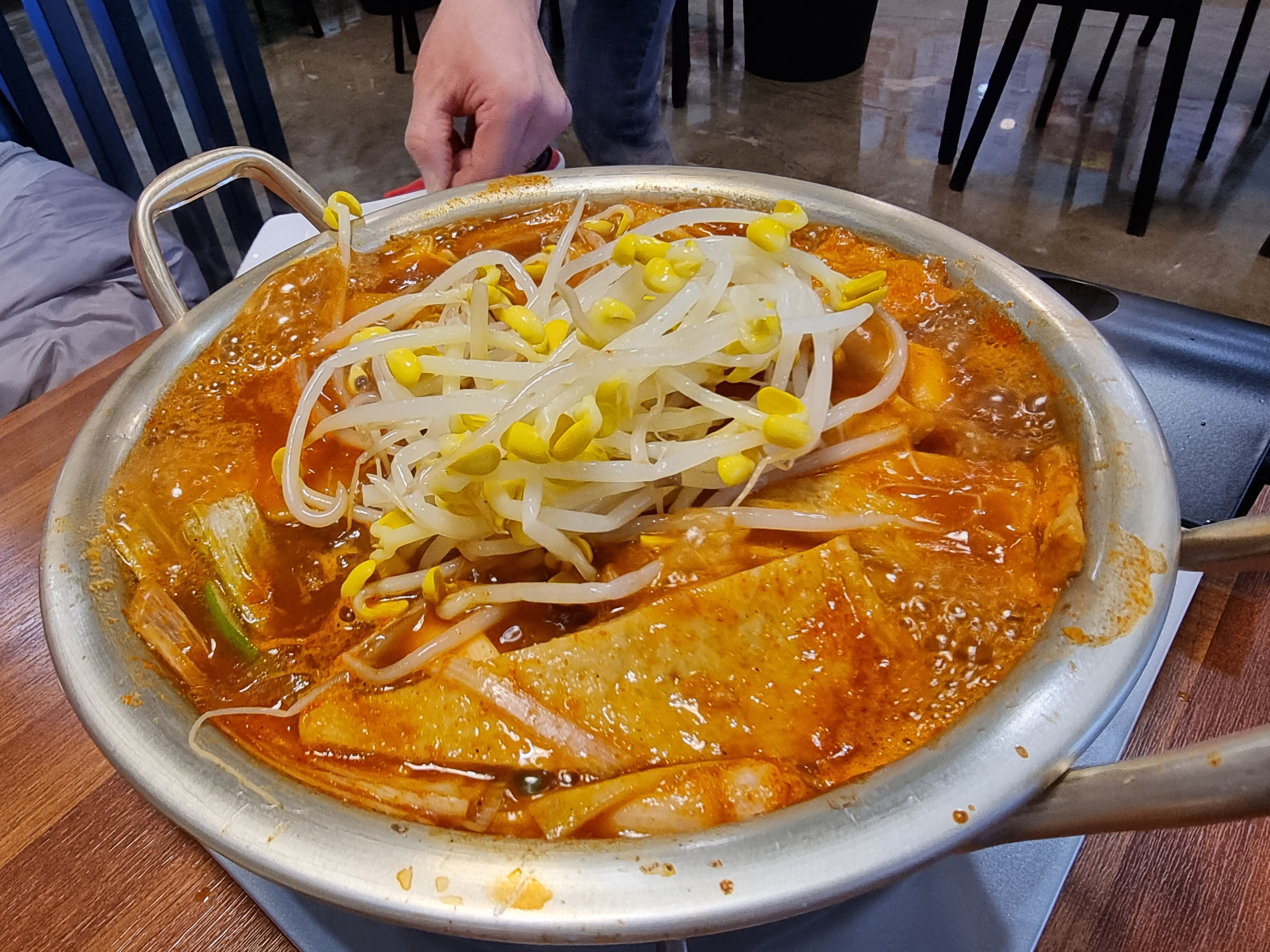 5. 어느정도 다 익어갈때쯤 콩나물을 올려주고 시식을 시작했습니다. 매운정도가 1단계이지만 아이가 먹을수 있을 정도는 아닙니다. 성인이 먹어도 좀 매웠어요. 근데 매움이 맛있는 매움이라고 해야될까요? 매운게 금방 사라지더라고요. 약간 중독성 있게 맛있습니다.