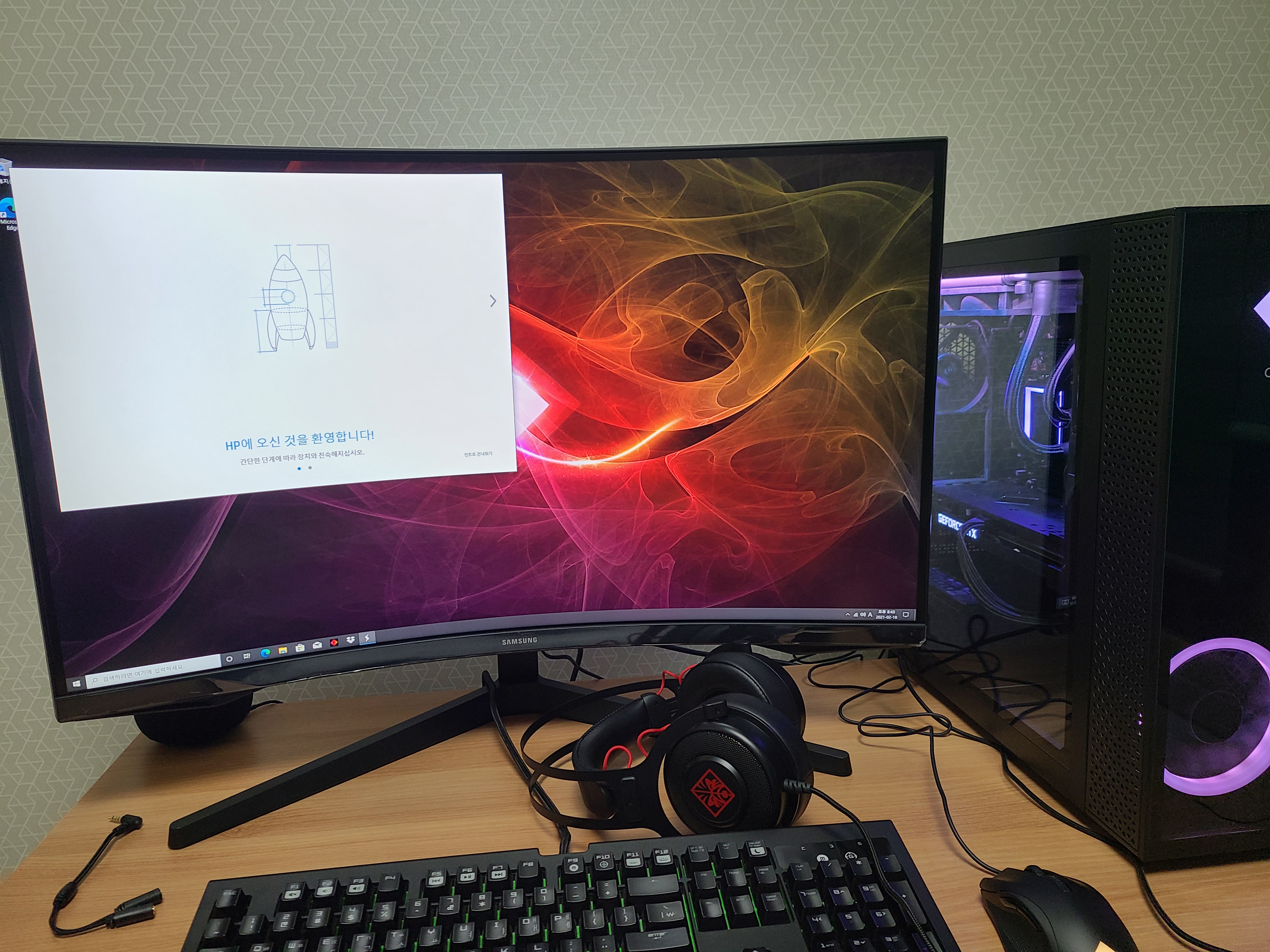 전원을 키면 컴퓨터 내부, 외부 LED가 들어옵니다. 이것은 HP 프로그램을 통해서 색상 조절할 수 있습니다.