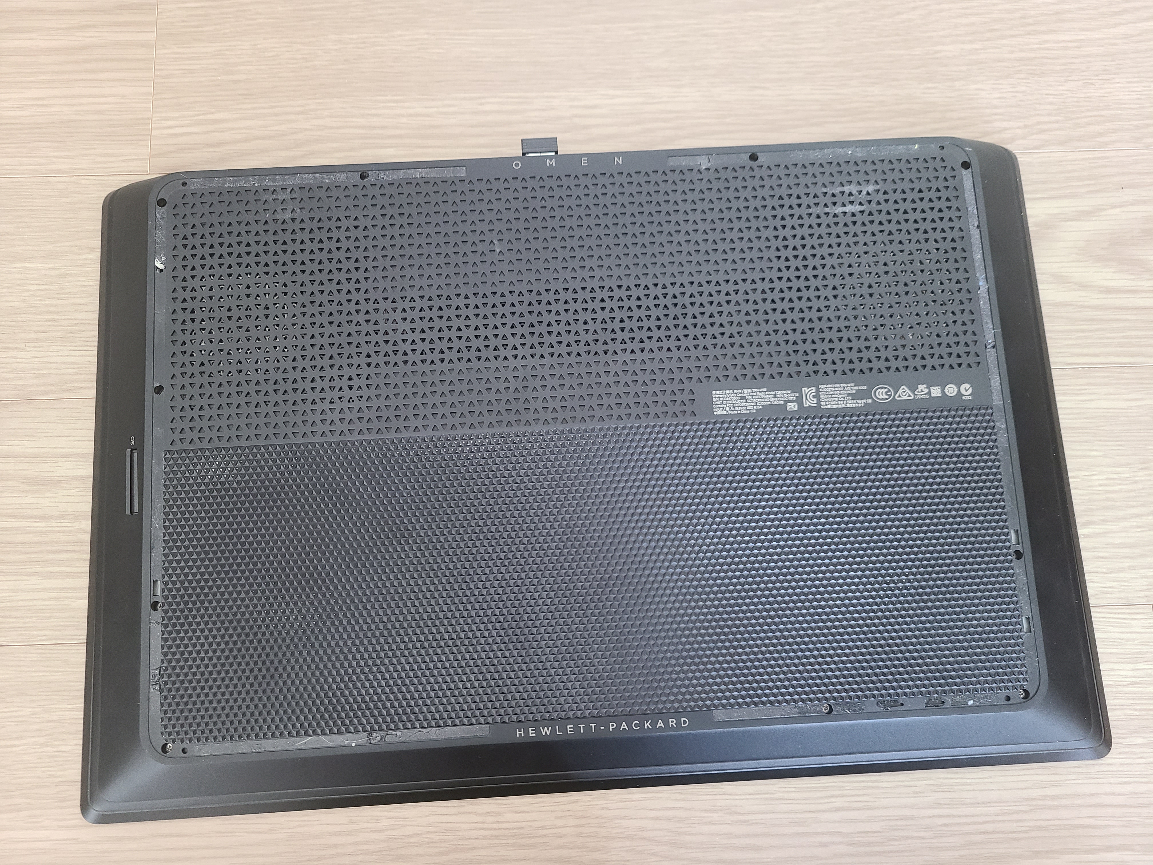 최근에 오멘 데스크탑을 구매했었는데 망가뜨린다고 생각하고 노트북 뒷판을 뜯어보았습니다. 맨처음에 나사가 어디있나 한참을 살펴보았는데....안보이더라고요. 자세히 보니 뭐가 붙어 있는걸 살살 뜯어보니 나사가 숨겨져 있더라고요. 뜯고 나사를 살살 풀어주었습니다.