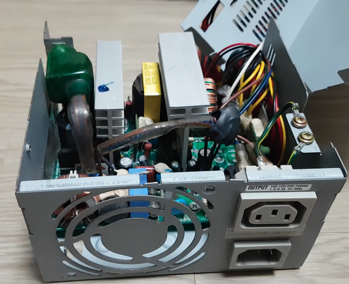 위의 두가지 방법으로 어느정도 소음은 잡았다고 생각이 들었습니다. 그런데 레트로 피씨는 참으로 이상한 녀석입니다. 소음 발생 포인트를 하나하나 잡다보면 또다른 소음이 거슬리기 시작합니다. 마지막 보스....바로 파워 서플라이(Power Supply Unit, 이하 PSU)입니다. 삼성 매직스테이션 케이스는 가로로 긴 형태로 되어 있습니다. 안엔 텅텅 비어 있고 오로지 PSU를 통해서만 열이 방출되는 구조로 되어 있습니다. 그래서 PSU팬이 무진장 쎄게 돌아야 합니다. 여기서 아주아주 큰 소음이 발생합니다. 최종 보스는 잡기가 힘듭니다. 옛날 컴퓨터라 자료도 없고 어찌해야 될지 몰라서 오삼동 카페에 올렸더니 회원 여러분들이 다양한 솔루션을 제시해주셨습니다.