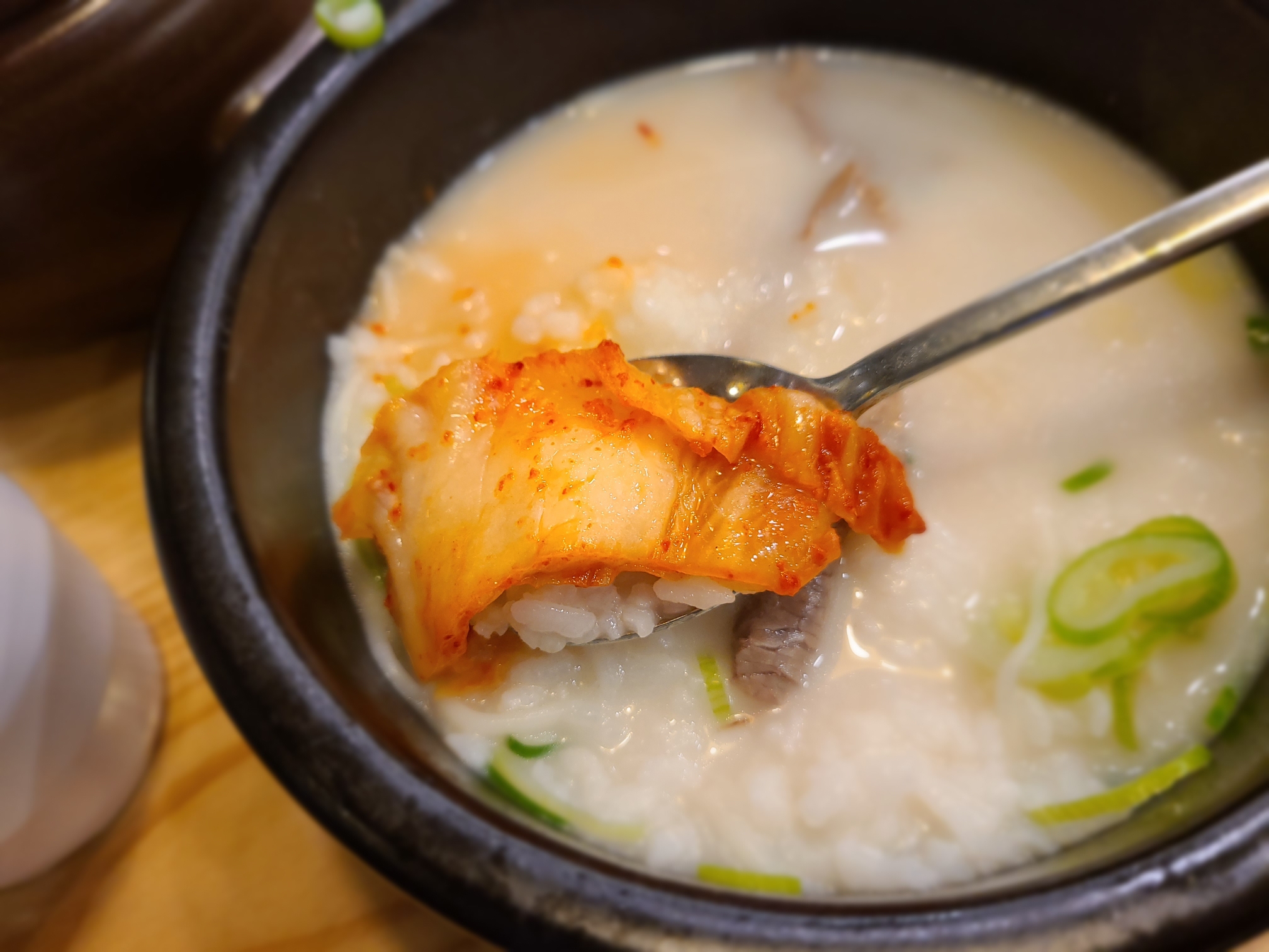 7. 설렁탕은 김치,깎두기와 같이 먹으면 간이 딱 맞습니다. 그냥 설렁탕만 먹으면 약간 싱거웠어요(테이블 위에 소금 있음)