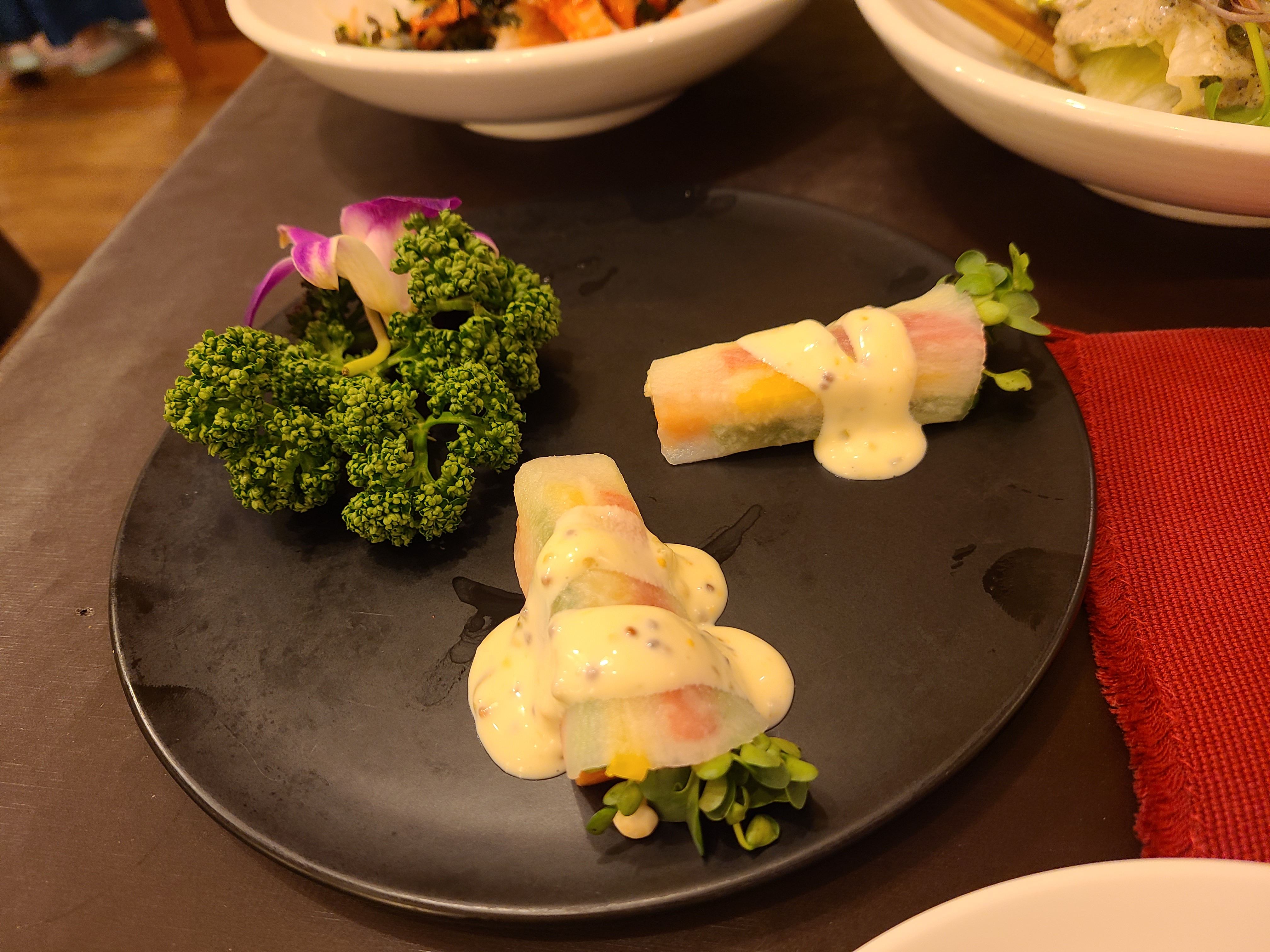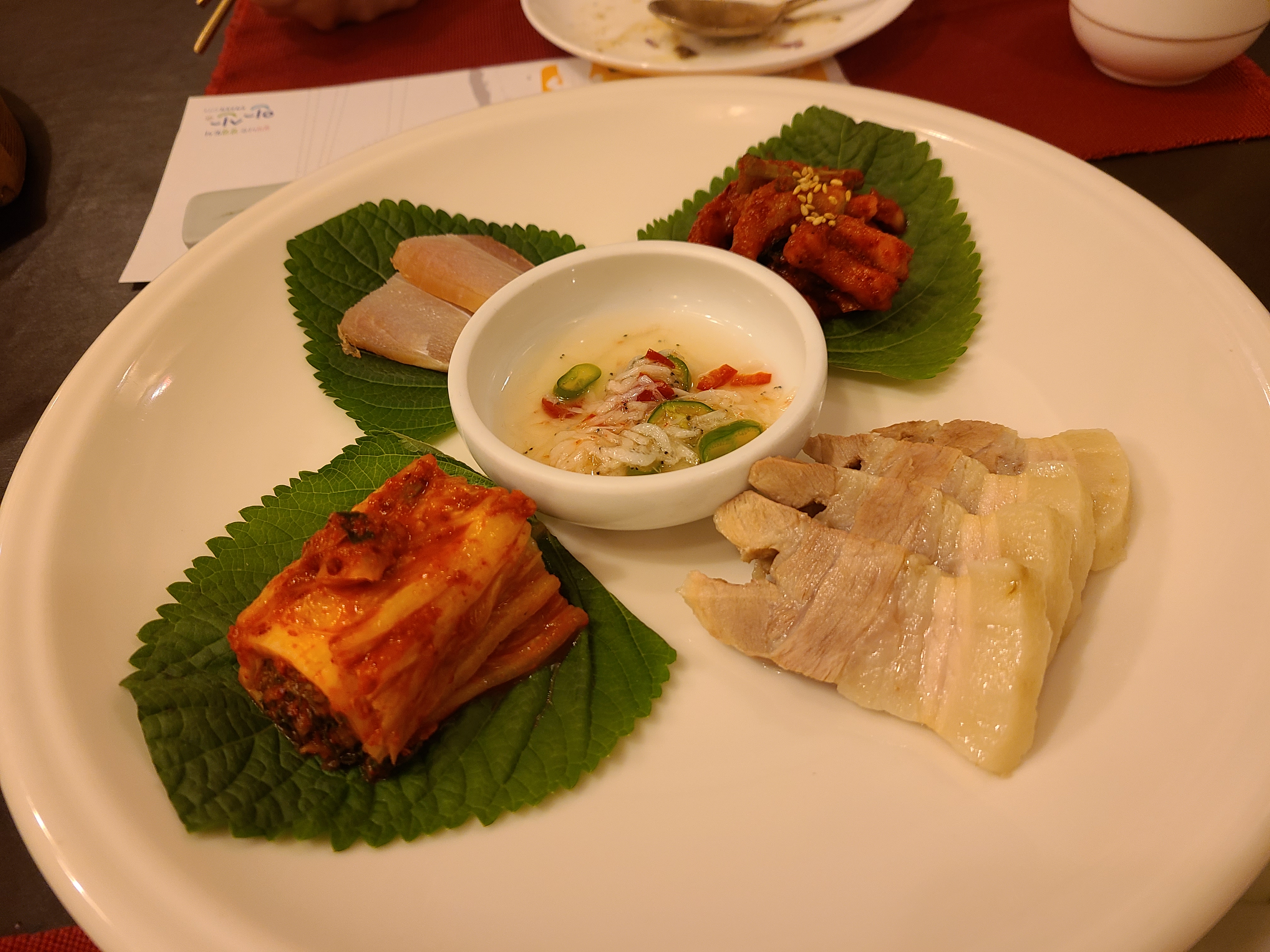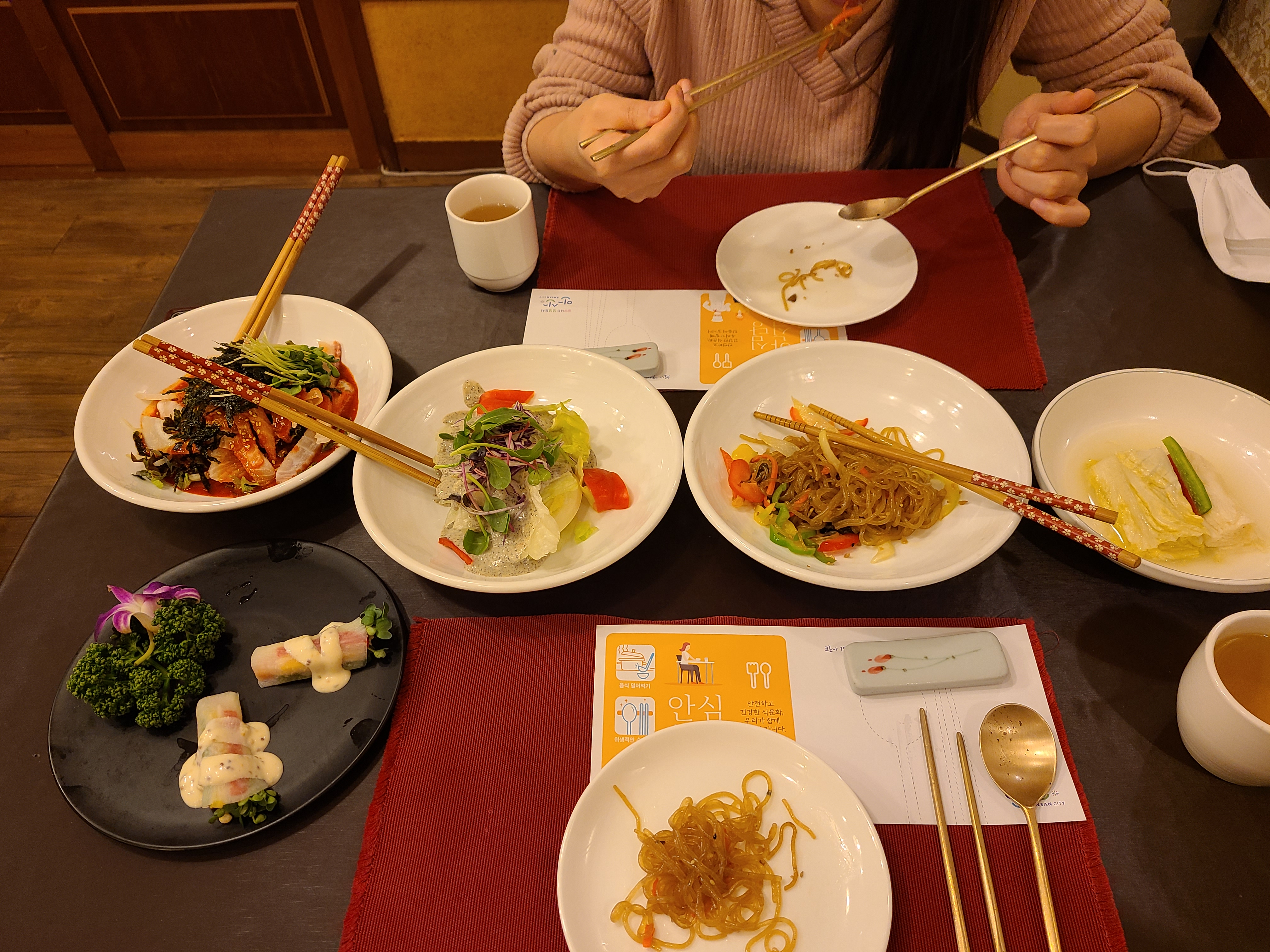 4. 샐러드부터 후식까지 정말 맛있더군요. 코스별로 나오니 조금씩 다양한맛을 한자리에서 즐길 수 있었습니다. 중간에 착각하셔서 구절판이 안나왔는데 죄송하다고 하시면서 음료수도 주셨습니다.