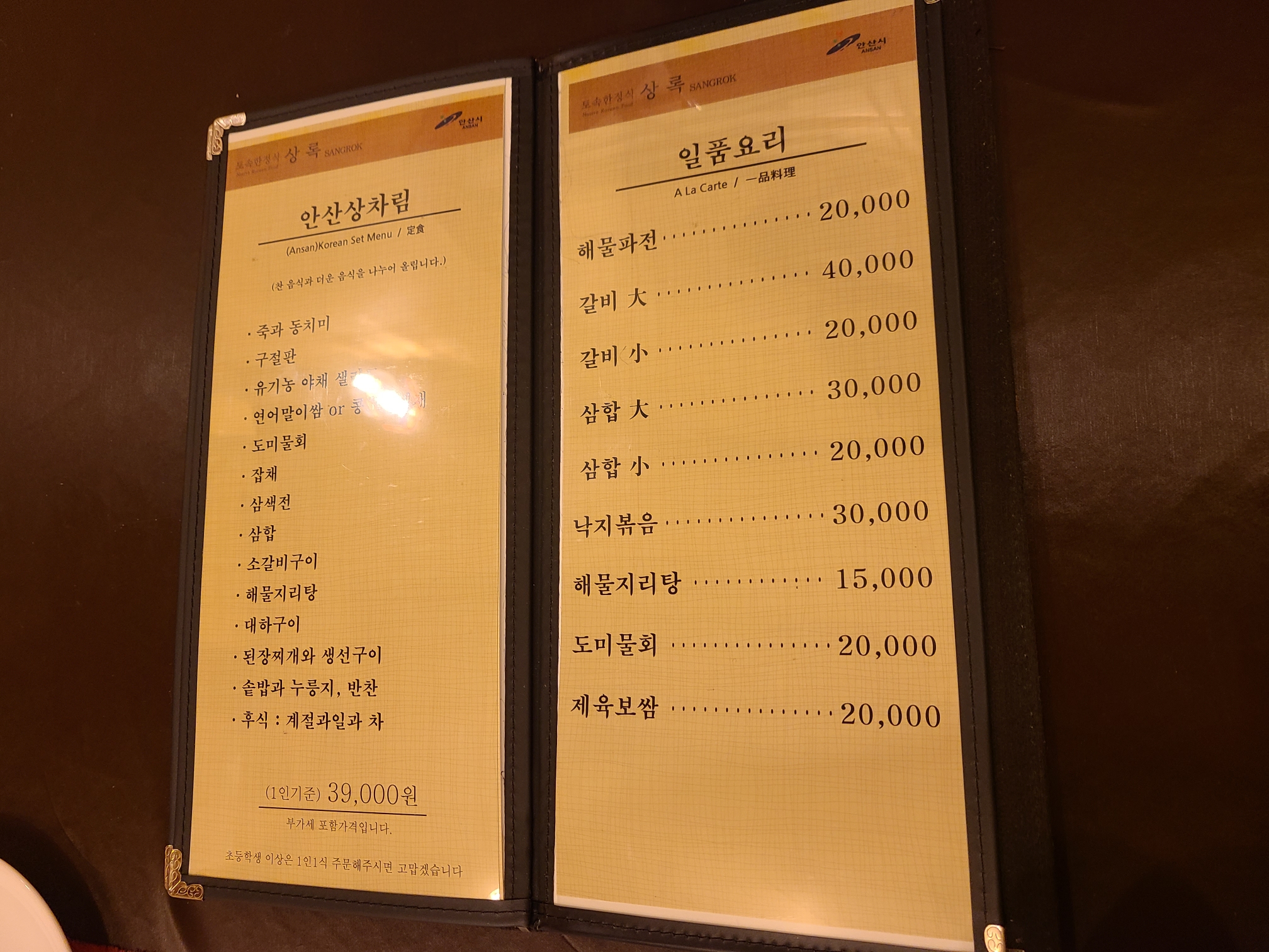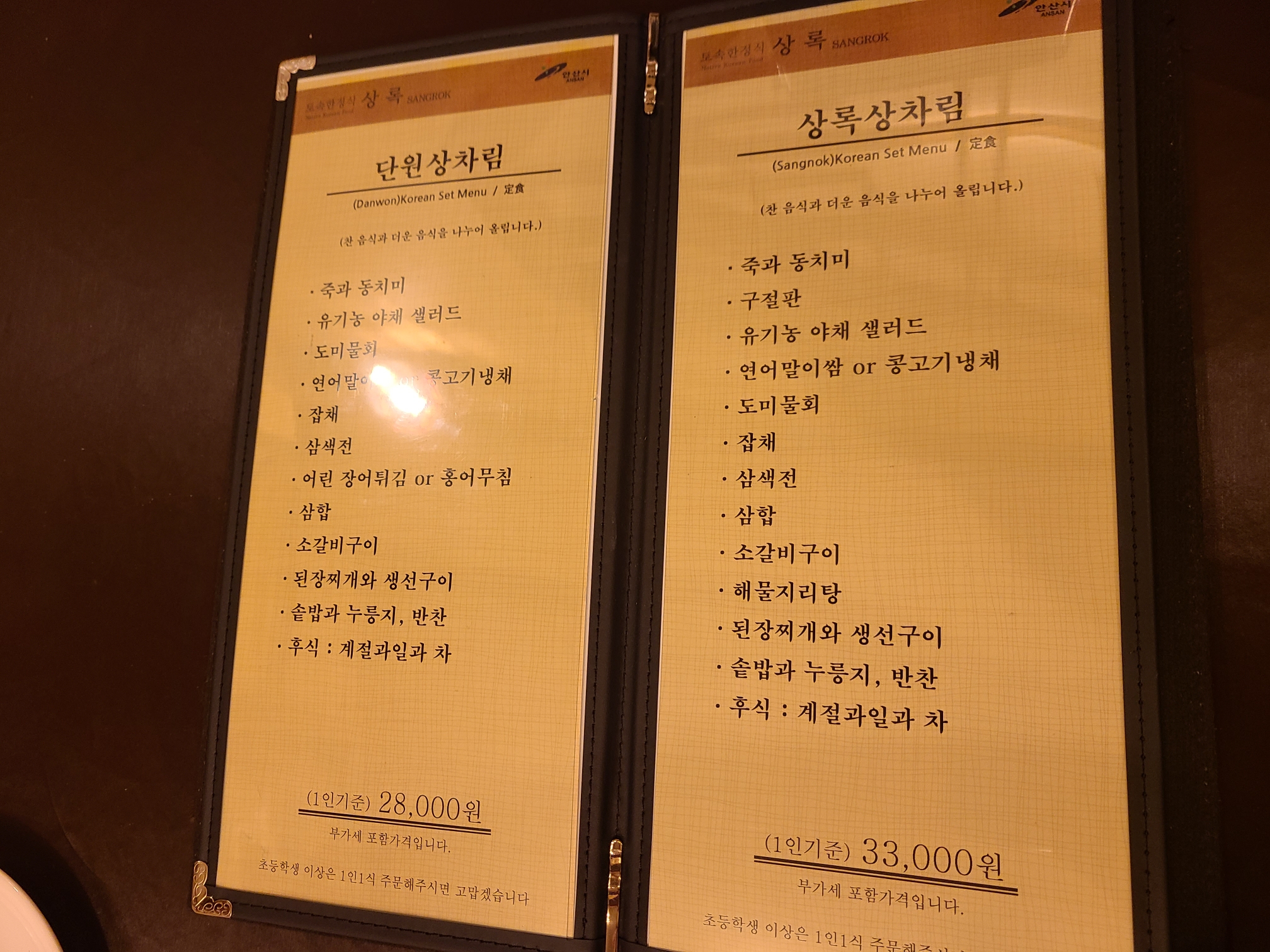 3. 메뉴명이 특이합니다. 단원 > 상록 > 안산 순으로 비쌉니다. 아마 여기가 상록한정식이니까 상록이 거 비싸게 책정된것 같습니다 ㅋㅋ 그리고 단원+성록 = 안산이니까 안산이 최고급인것 같습니다. 센스가 있으시네요.