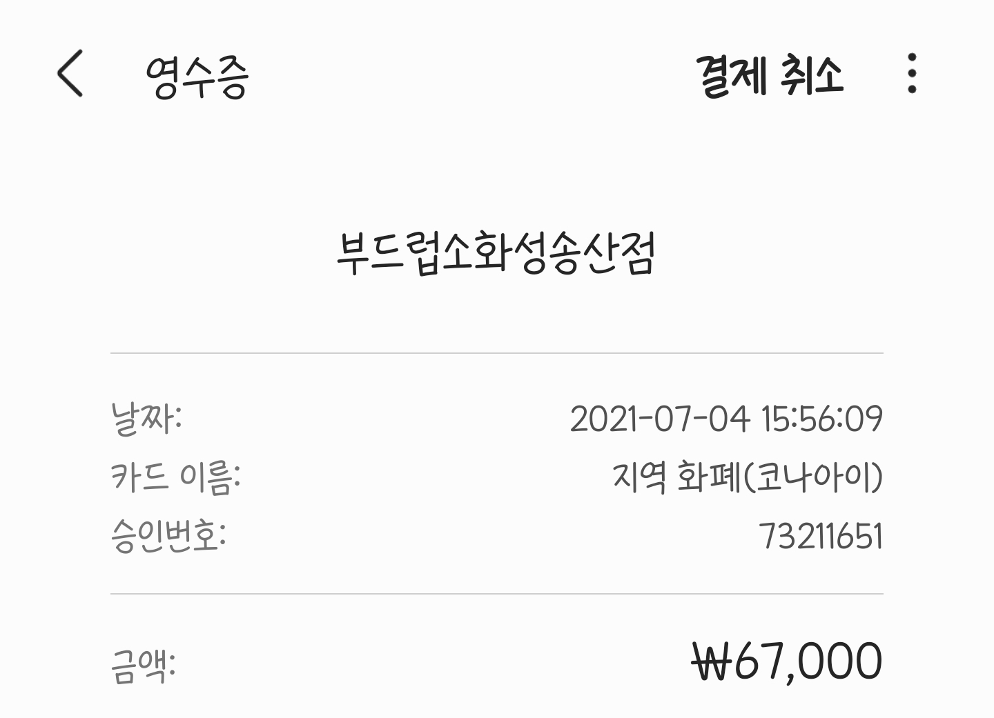 7. 고기가 맛있어서 맥주도 3병이나 먹고 ㅋㅋㅋ 갈비살 1인분 더 시켜 먹고 전투를 끝냈습니다. 가격은 6만 7000원...소고기치고 저렴한듯 하네요! 지역화폐로 계산했어요.