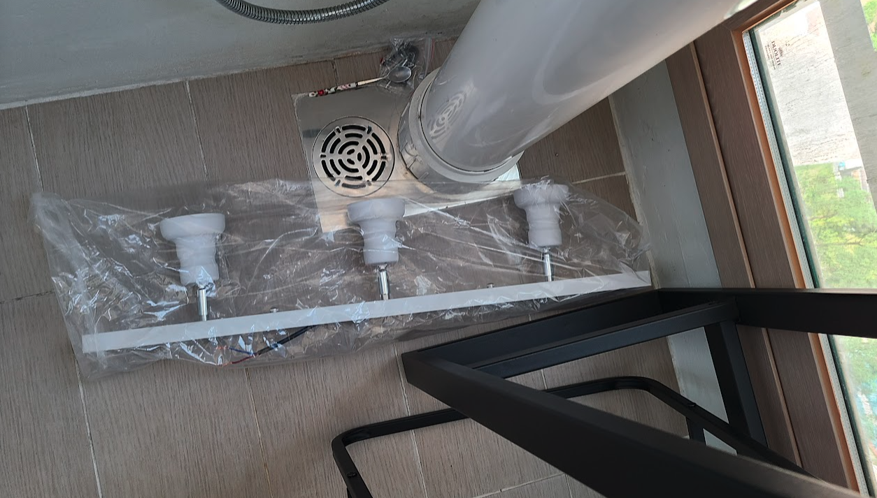 이게 전동건조대에서 전원을 뽑아서 등기구에 연결해주는 작업을 해야되는데 블로그, 유튜브에서 보니 만만치않은 작업이더군요. 셀프로하는것은 포기하고 숨은고수앱을 통해 고수님에게 부탁을 드려 등기구 및 콘센트를 안방 베란다에 설치하였습니다. 정말 깔끔하게 잘 해주셔서 감동이였습니다. ^^