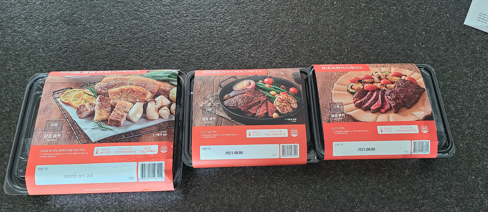 저는 '마이쉐프'란 밀키트 전문 쇼핑몰에서 4만원짜리 세트를 하나 샀습니다. 며칠 기다리니 도착했는데요.