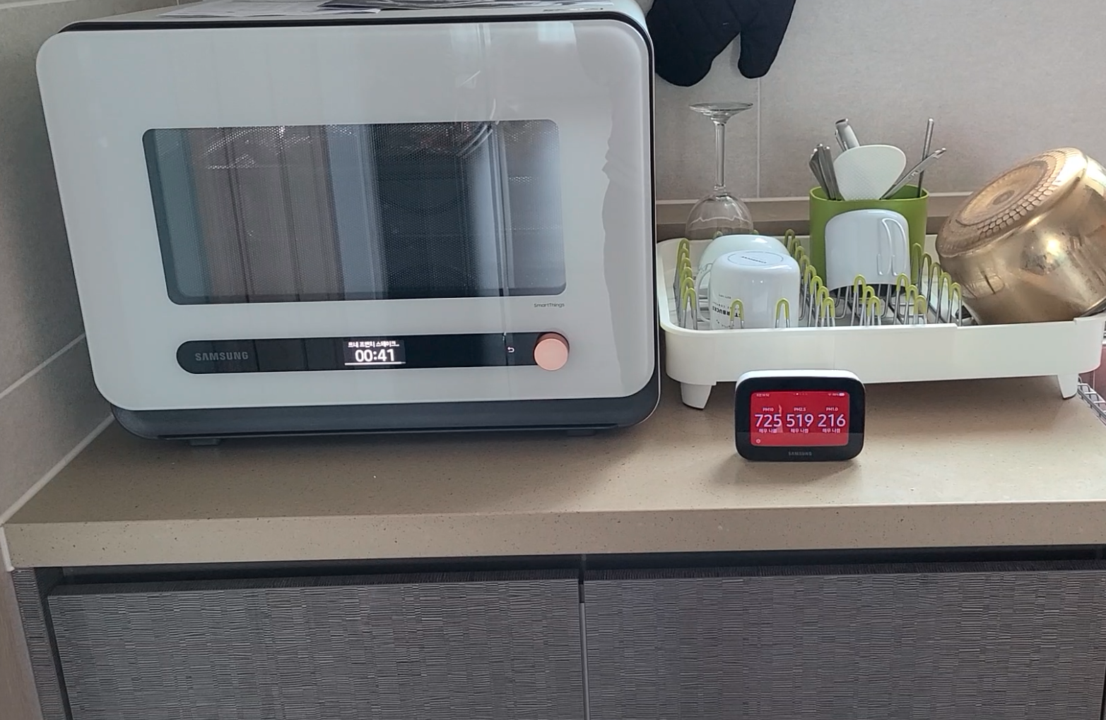 다음모델에서는 미세먼지를 빨아들이는 그런게 필요하지 않나 생각이 들었습니다. 저는 미세먼지가 심해서 큐커를 주방에서 몰아내고 베란다에 설치했어요.ㅠㅠ 다행히 아내는 별말 안했습니다. 휴우.