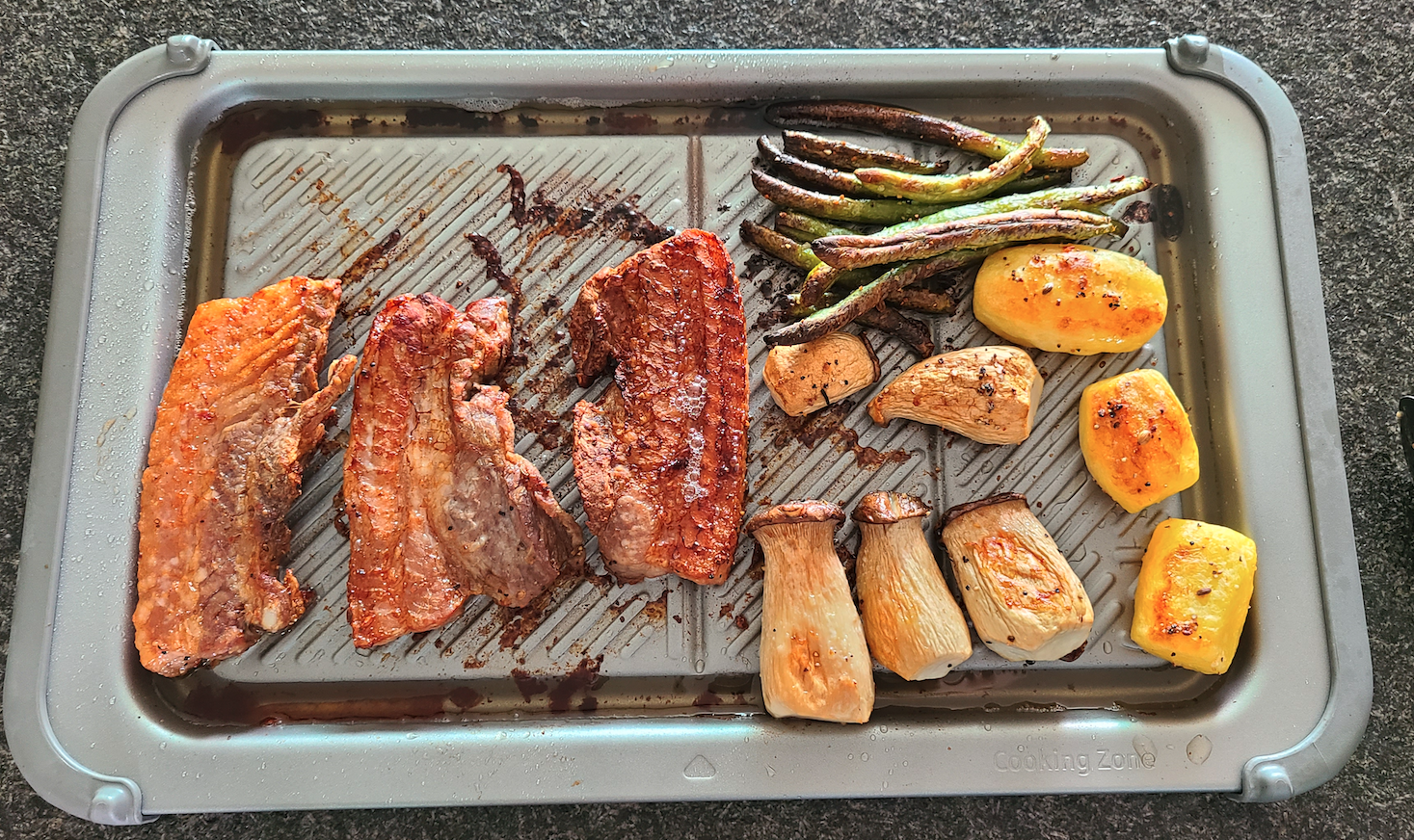 꺼냈더니 고기가 약간 많이 구워진듯하네요. ㅎㄷㄷ 그래도 야채랑 고기 아주 맛있게 먹었습니다. 단, 1인용이라는거...양이 좀 부족했어요.