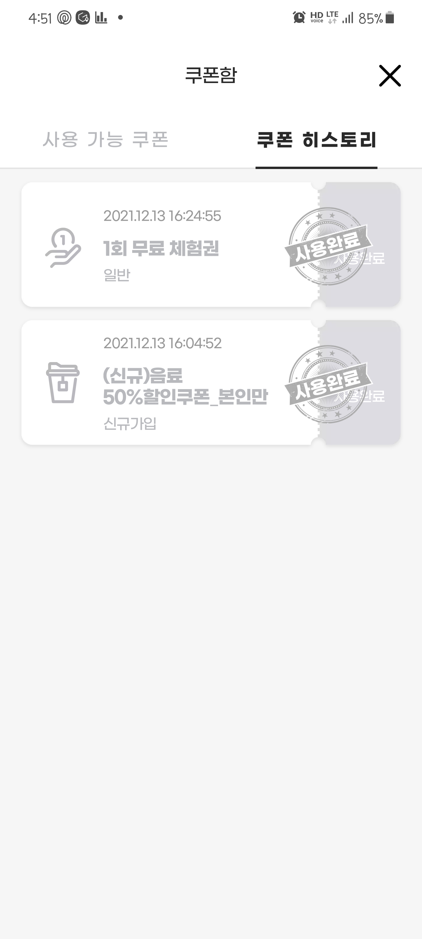 앱에서 쿠폰이력을 보니 사용한게 정상적으로 보이더라고요.