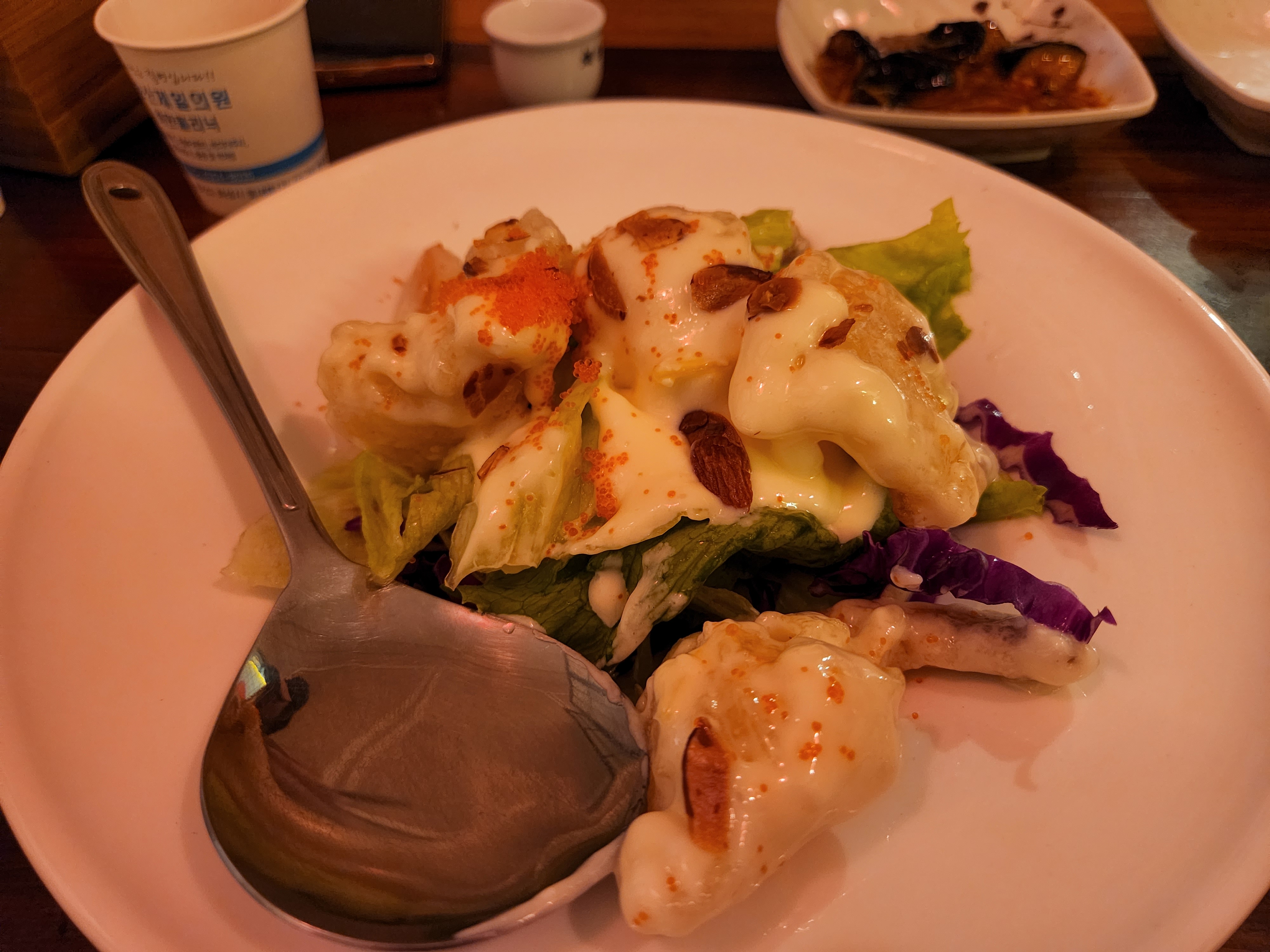 6. 새우 튀김 + 샐러드 요리가 나옴. 새우 통통한 맛과 바싹함을 동시에 느낌. 이것도 맛있음.