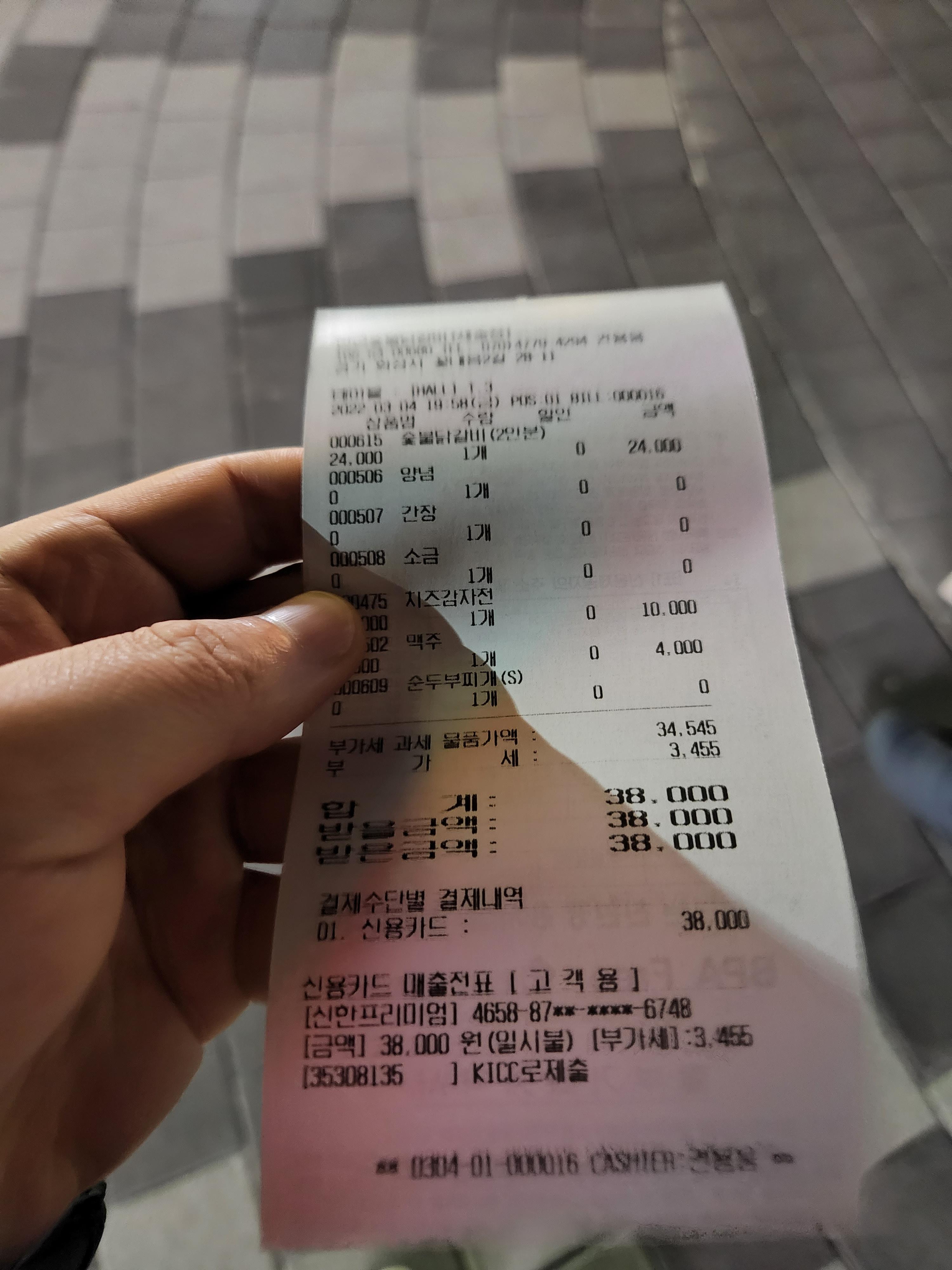 4. 한근숯불닭갈비, 치즈감자전, 병맥주를 시킴.