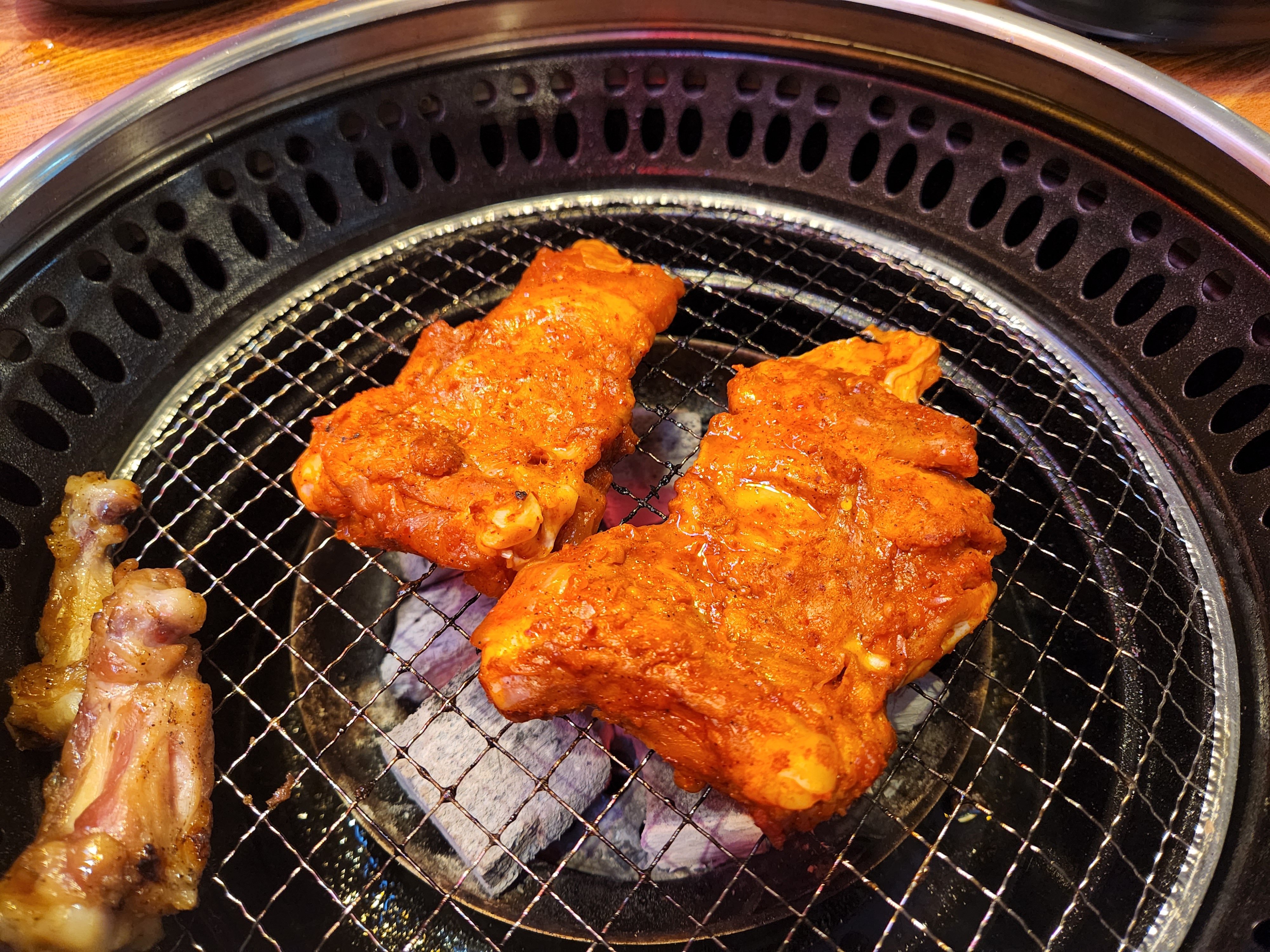 11. 불조절이 제대로 되지 않아서...고기가 탔음 ㅠㅠ 불조절 스킬이 필요해보였음. 양념을 제일 마지막에 먹었는데 그때서야 불이 알맞아졌음 ㅠㅠ 고기 굽기 난이도가 높음 ㅠㅠ
