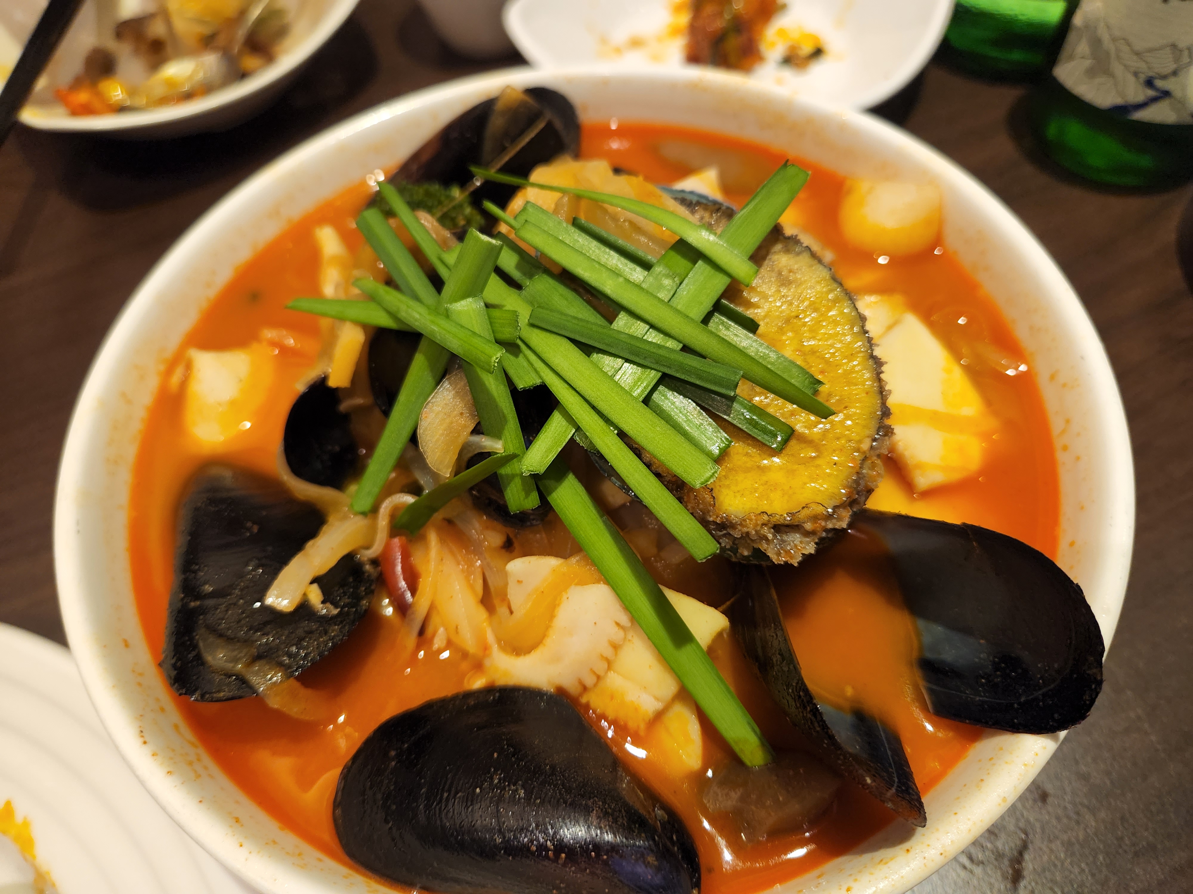 7. 전복 짬뽕은 진짜 큰 전복 하나가 땅 하고 들어가 있었음. 전복은 살아있는 녀석이였던걸로 추정함. 왜냐하면 식당 입구 옆에 활어와 살아있는 전복을 보았기 때문임. 완전 신선. 사르르 녹더라. 가위는 따로 안주는데 달라고 하면 줌. 잘라서 먹길 추천.