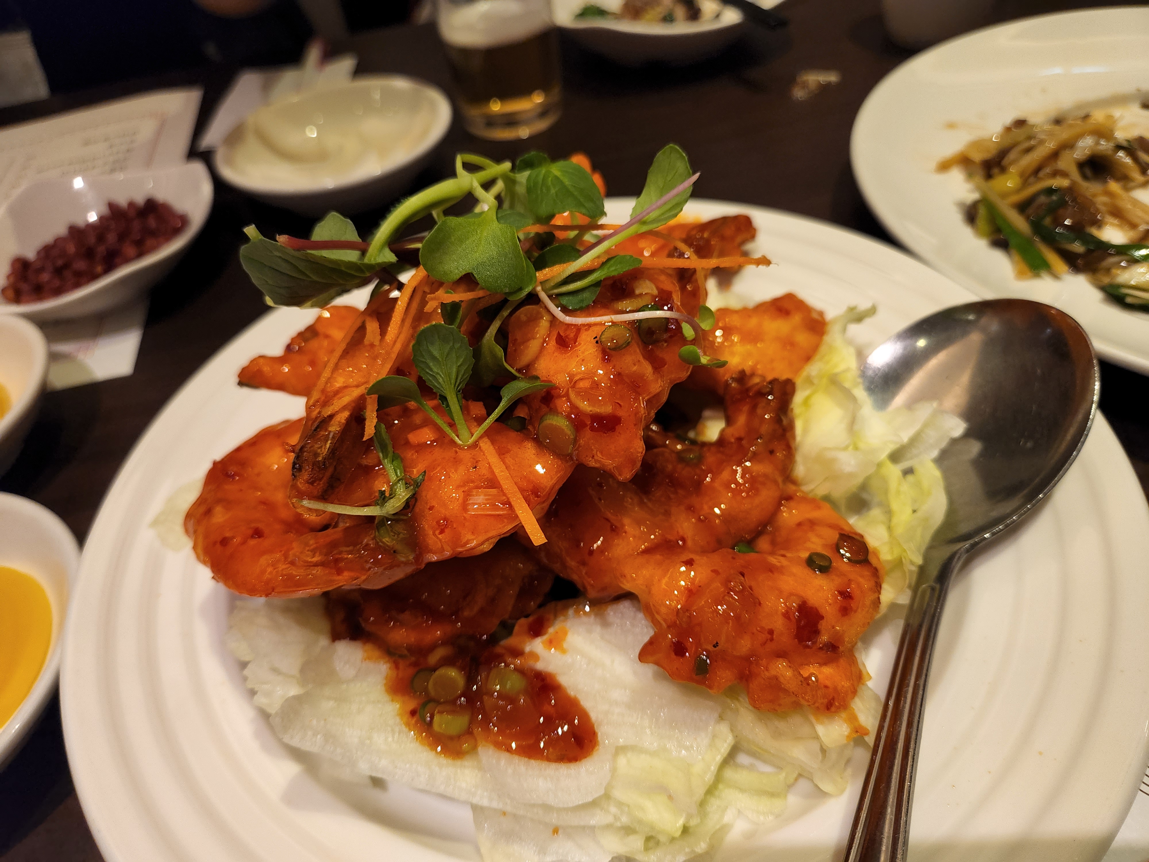4. 칠리새우는 엄청 큰 새우를 칠리소스에 버무려서 나왔음. 새우가 커서 그런지 식감이 정말 좋았음. 난 원래 새우를 껍질채로 먹는데 거부감이 없었음. 그런데 껍질까서 드시는분은 조금 꺼려지긴 할것 같음.