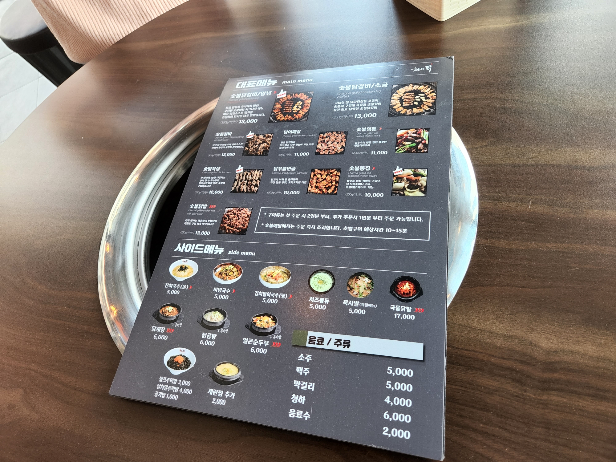 3. 숯붉닭갈비는 양념하고 소금 이렇게 두개가 있는데 처음 주문할때는 동일메뉴 2인분이상은 시켜야함. 그래서 먼저 양념 2인분을 시킴.