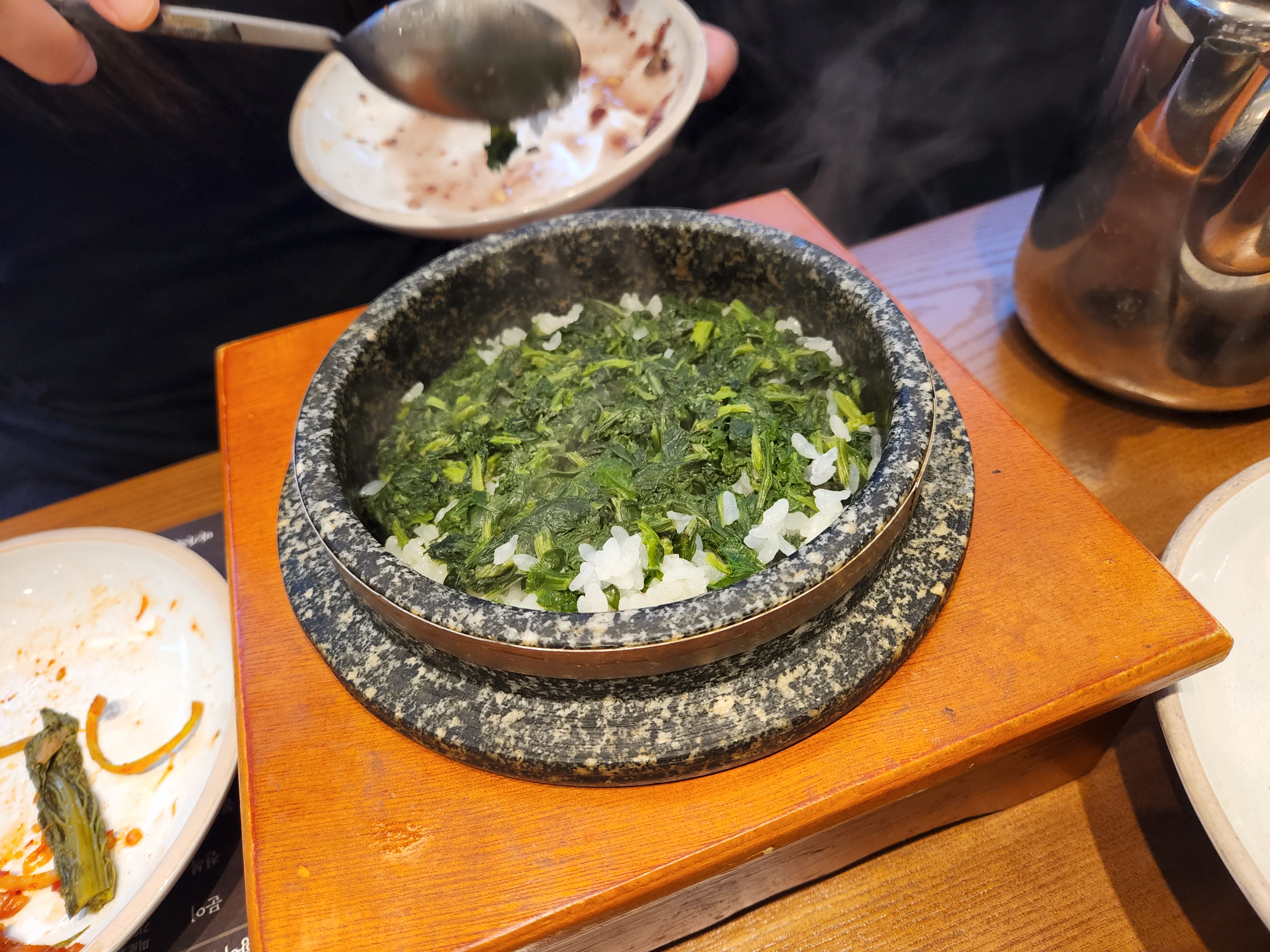 6. 한참 먹고 있으니 곤드레 돌솥밥이 나오고 된장찌개도 나옴. 원래는 곤드레 돌솥밥말고 굴밥 먹을려고 했는데 굴밥은 계절메뉴라고 해서 바꾸먹음.