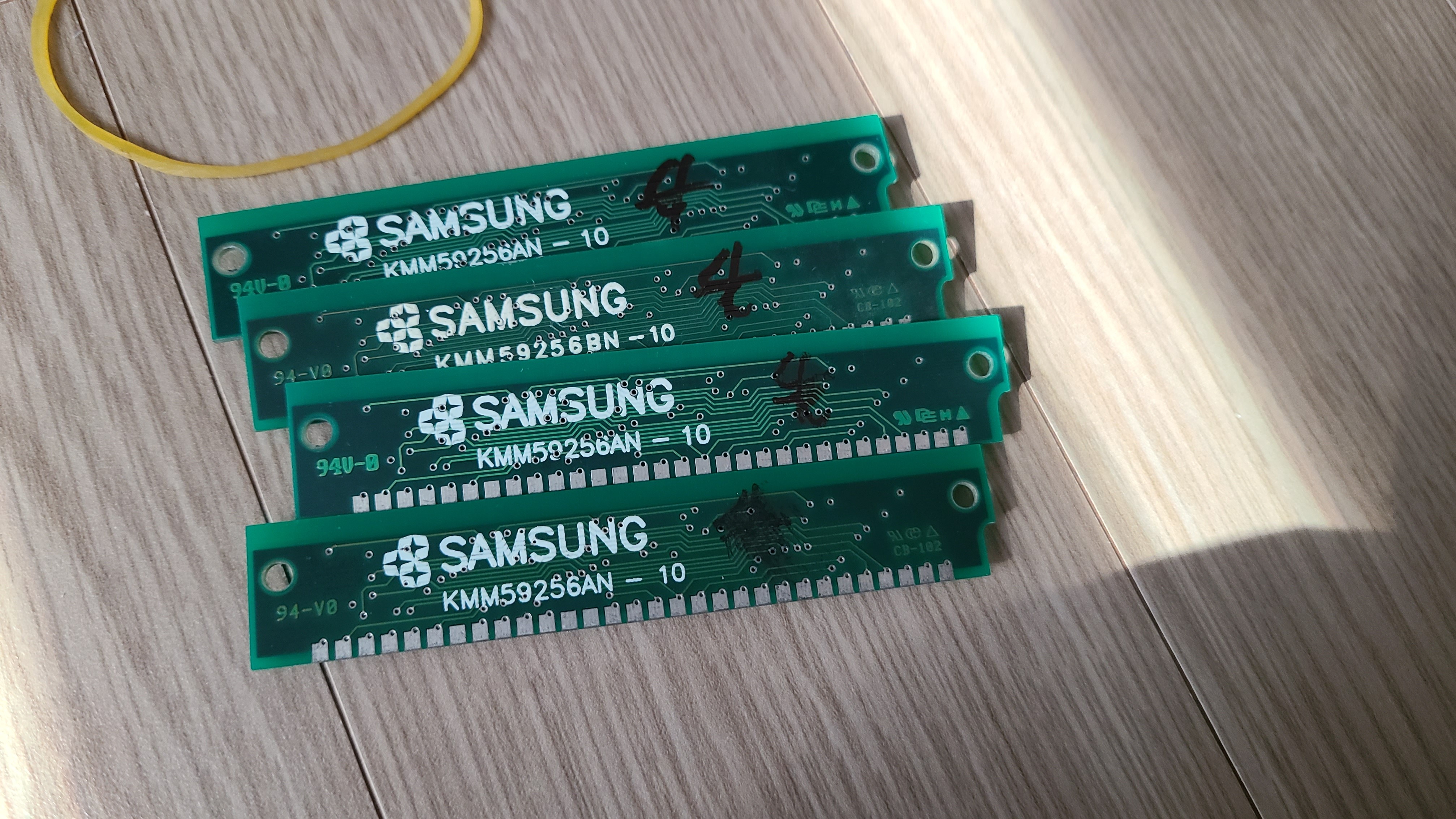 메인보드에 1MB가 내장되어 있고 확장으로 최대 1MB을 늘릴수 있다. 가져왔을때는 256KB × 2EA가 달려 있어서 삼섬 풀뱅 채울려고 또 램을 구입했다. 그런데 맨 뒤에 8이라고 쓰여진 것과 10이라고 쓰여진 것이 있다. 찾아보니 8은 80ns의 속도를 갖는것이고 10은 100ns의 속도를 의미하는것이다. 당연히 조금 더 빠른(?) 80ns로 풀뱅을 채워주었다.