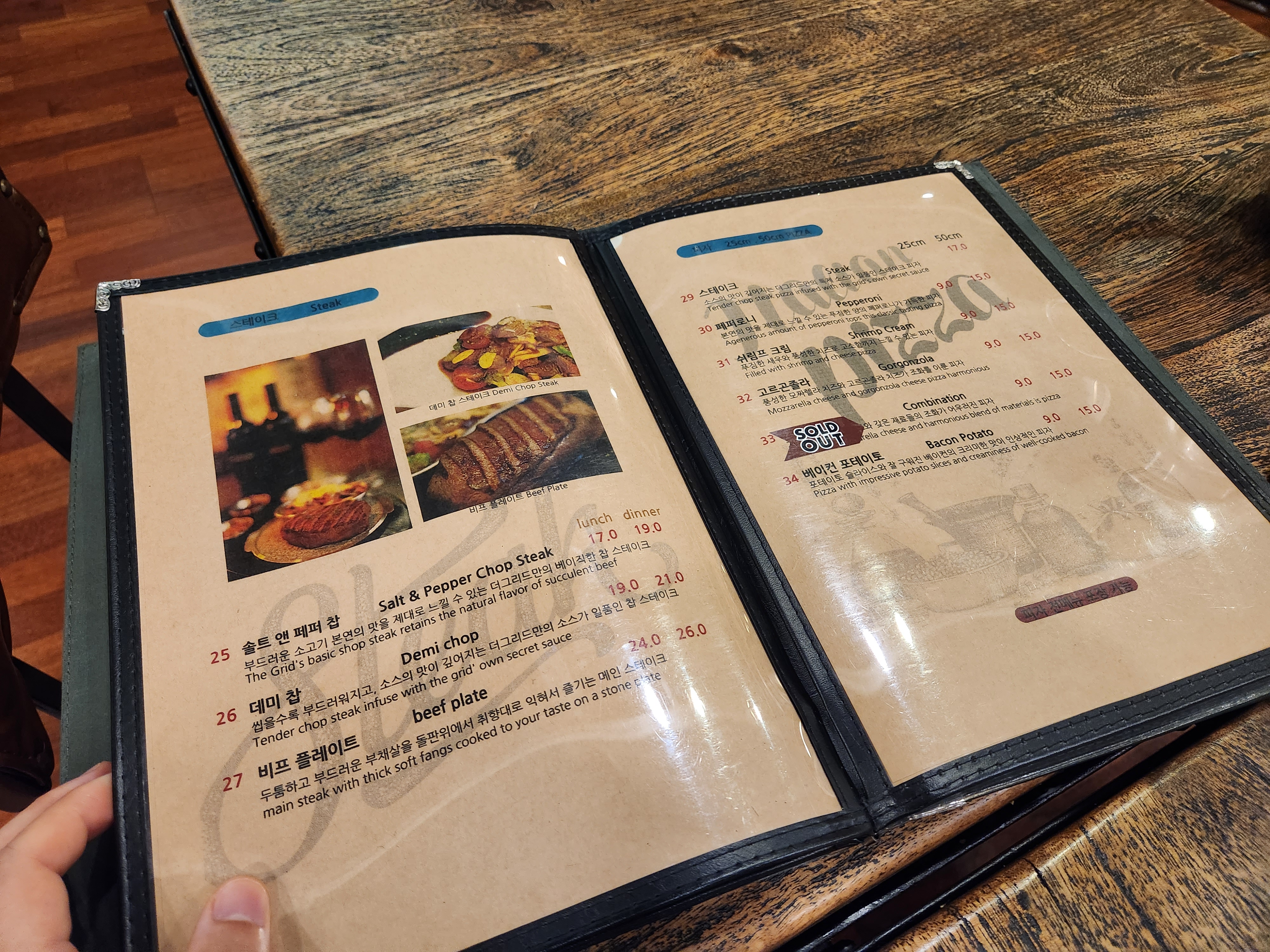 4. 와이프는 스테이크+파스타+감바스 이렇게 먹자고 했는데 나는 1인당 1개 스테이크 먹어야 한다고 해서 스테이크2개+파스타로 쇼부를 보고 주문함.