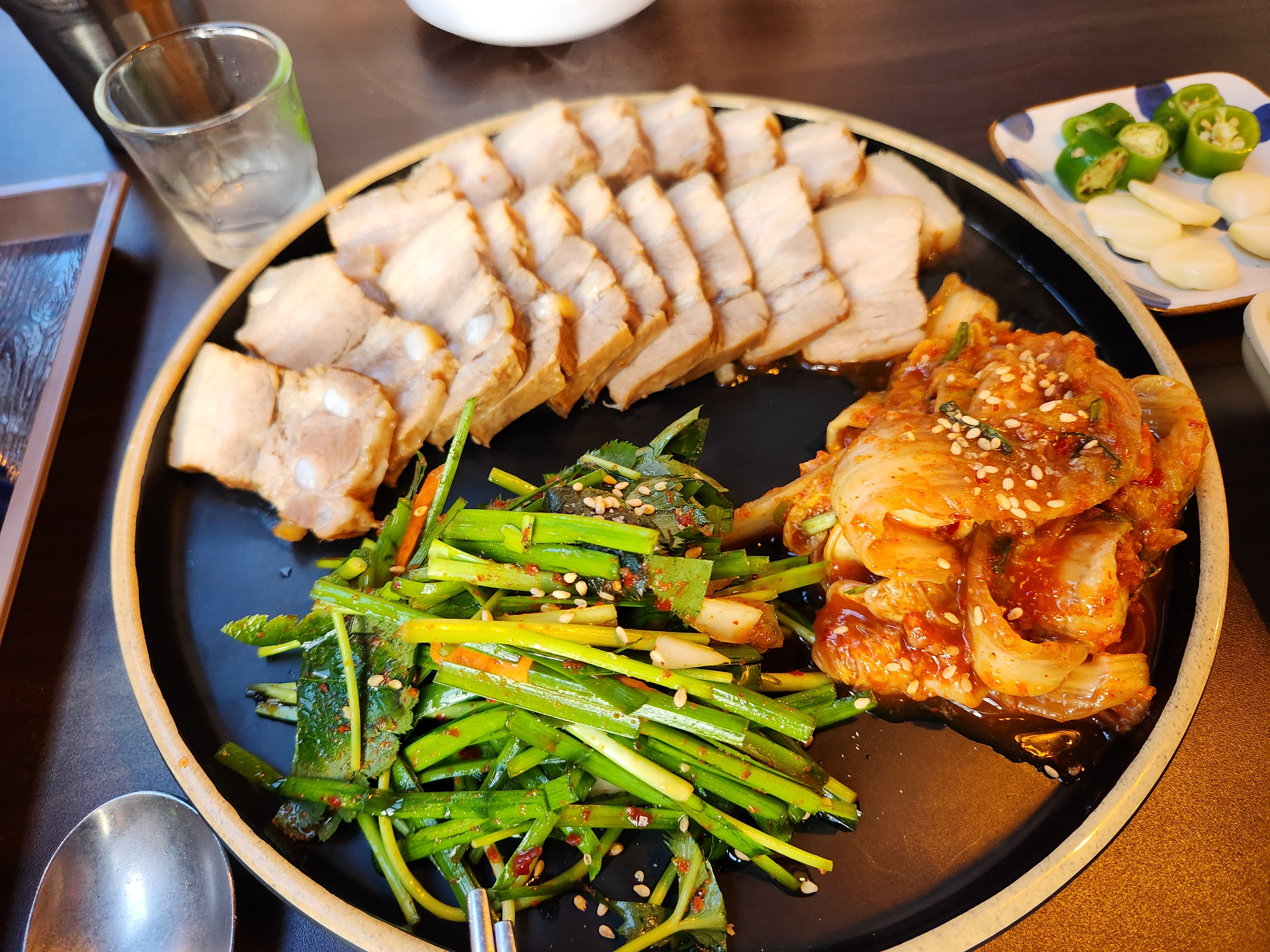 3. 신메뉴인 돼지고기 수육과 부추전을 시킴. 돼지고기랑 김치, 부추랑 같이 먹으니까 맛있었음.