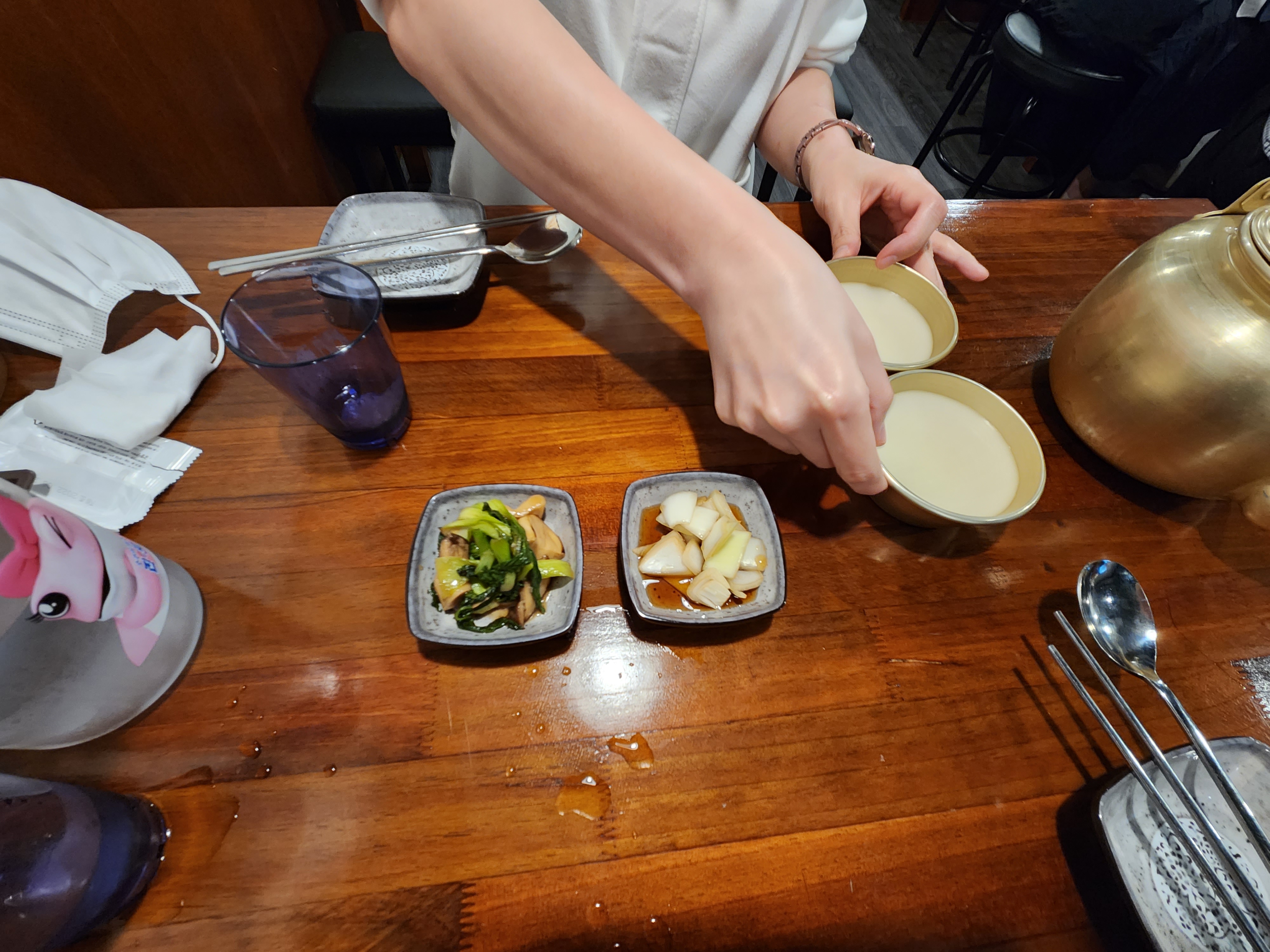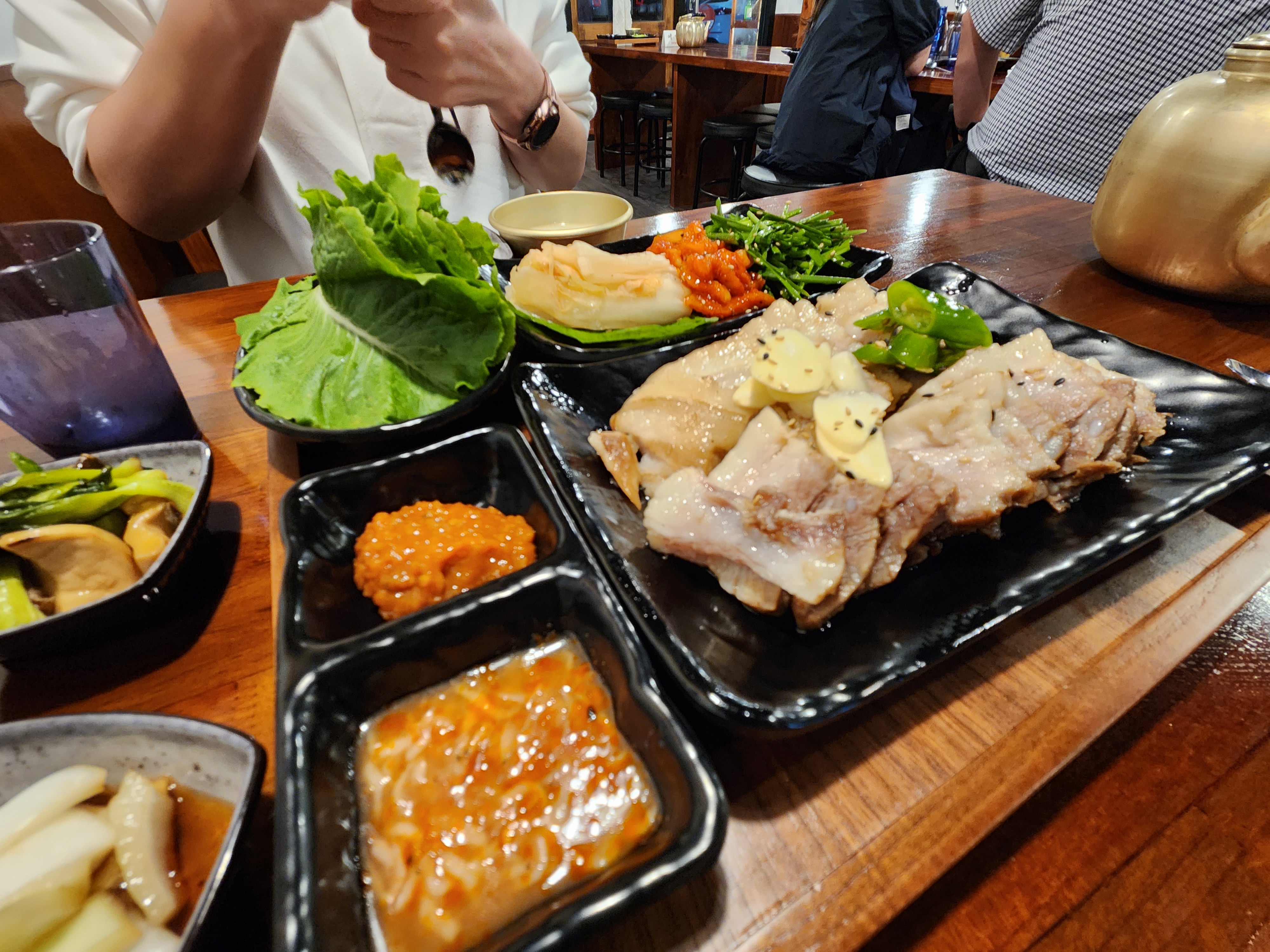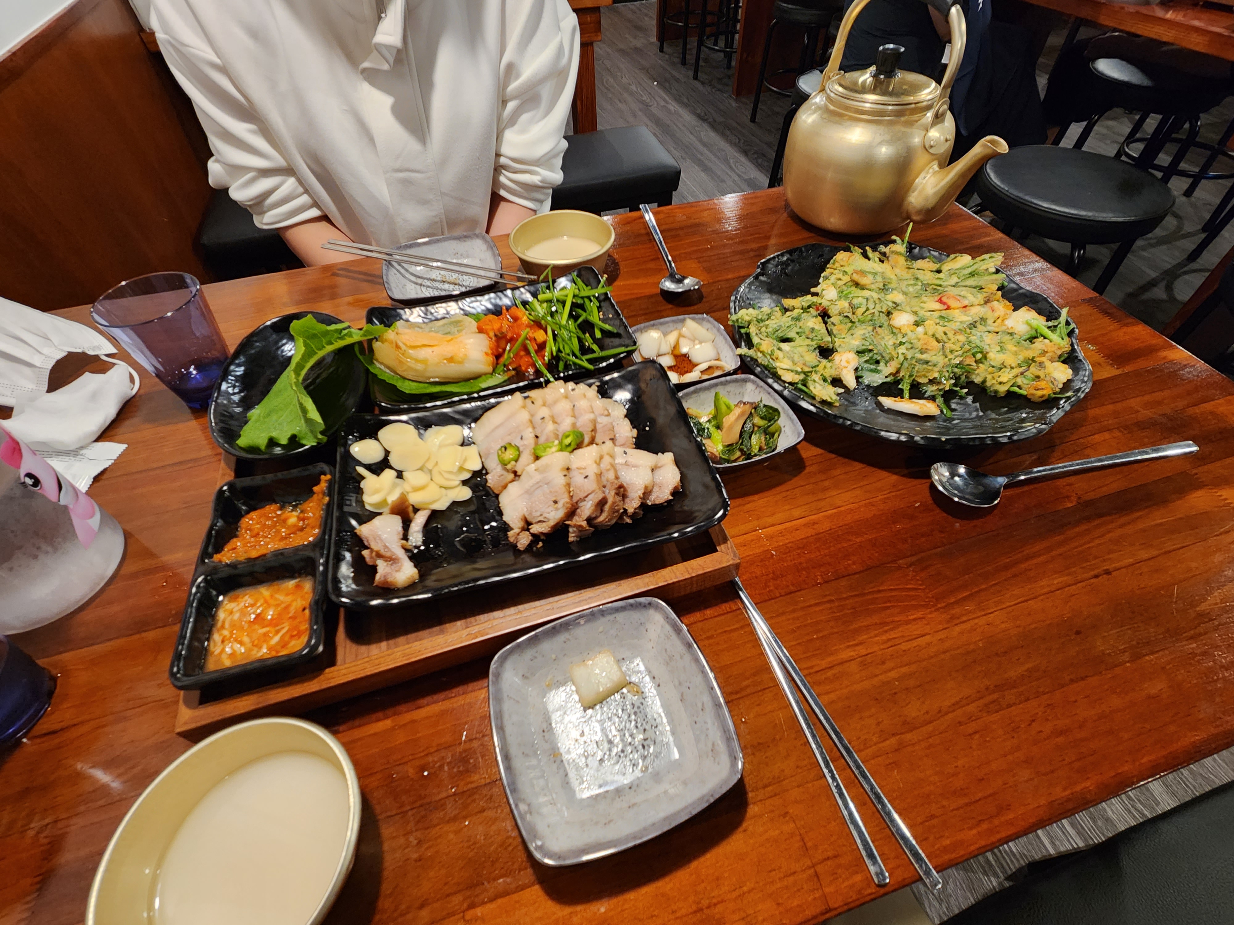 3. 막걸리, 보쌈, 부추전을 시킴. 본인은 면류를 좋아하지만...건강상 먹지 않게 됨 ㅠㅠ