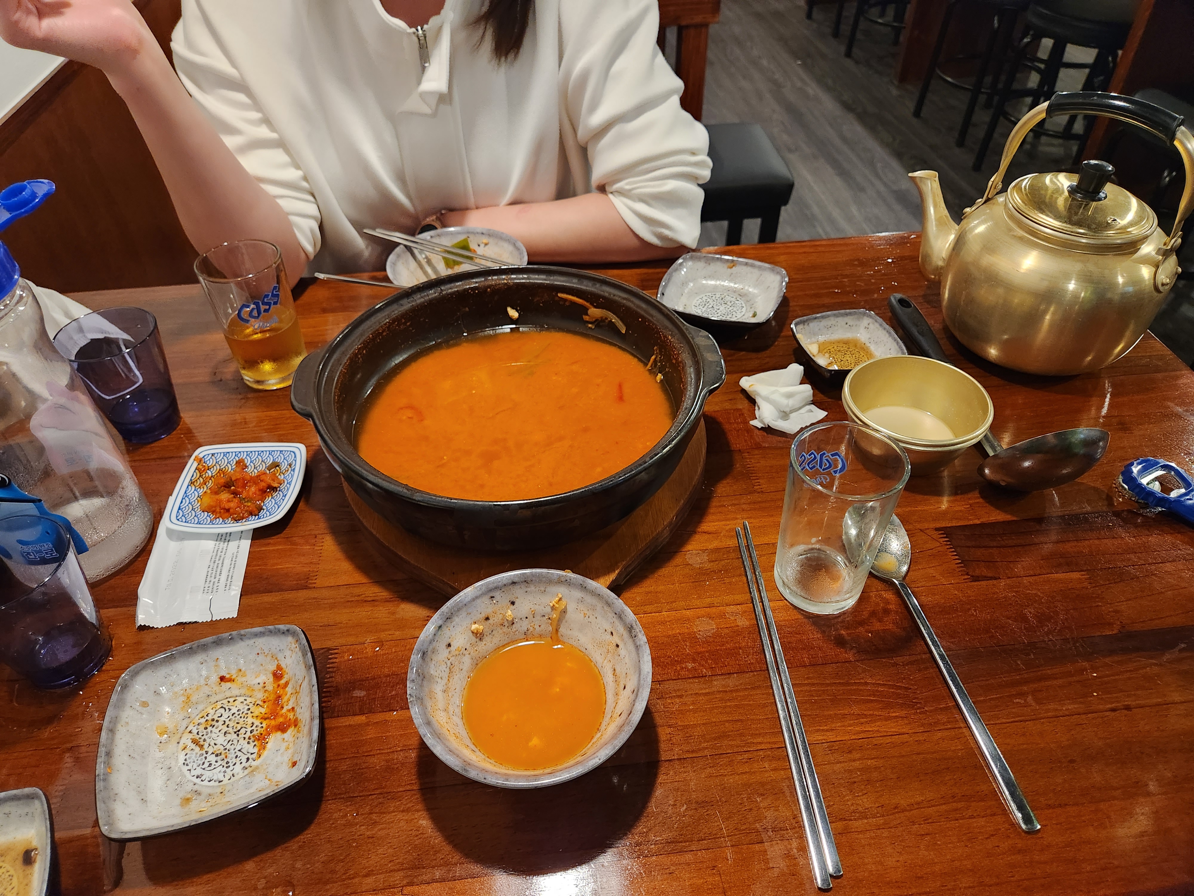 8. 알탕이 나옴. 고추장 베이스의 알과 두부가 잘 어울렸음. 소주랑 먹으면 맛있을듯.
