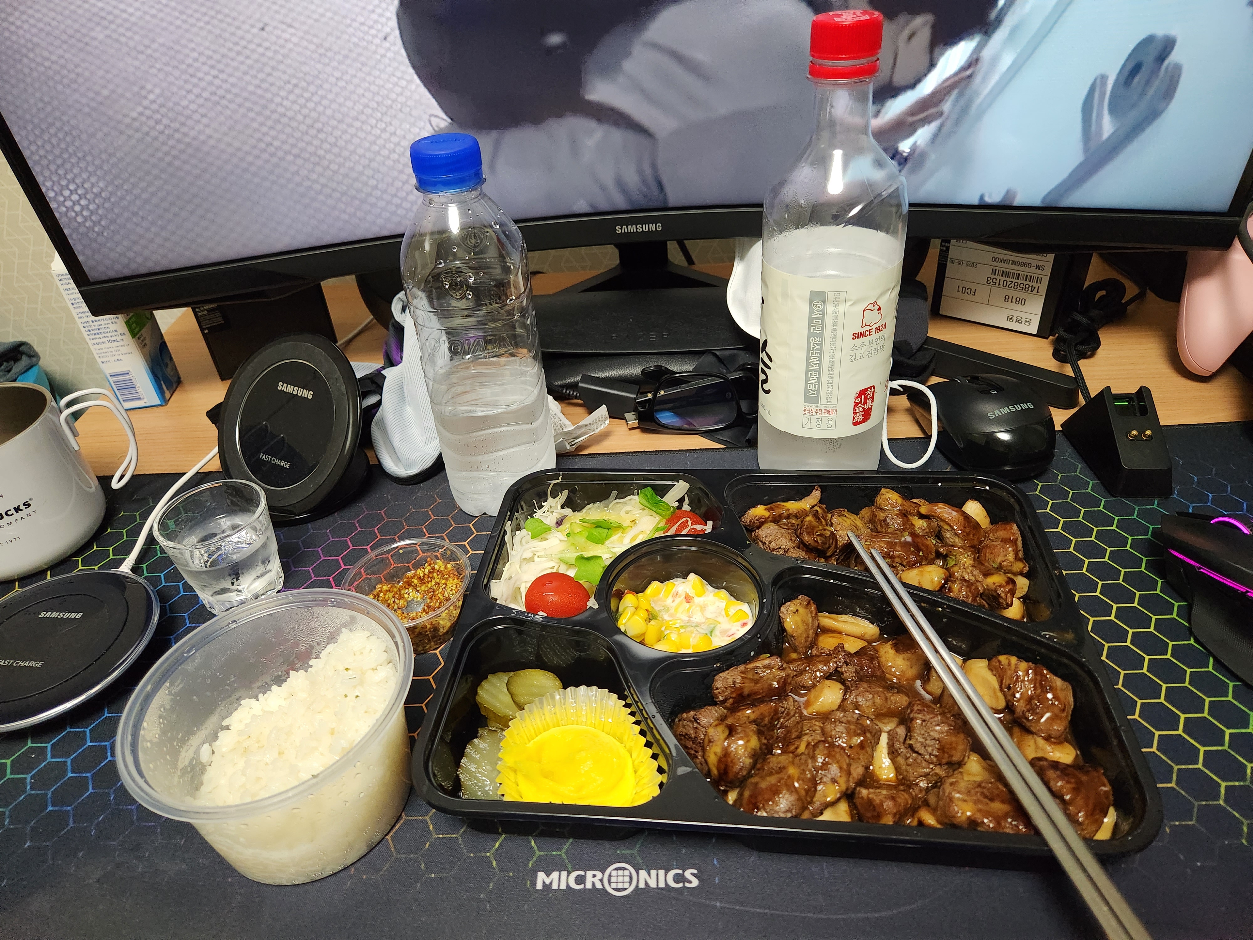 7. 고기를 너무 많이 시켰나....양이 많았다. 먹고 있다가 고기를 먹으니 술이 땡겨서 소주도 가져와서 먹었다.