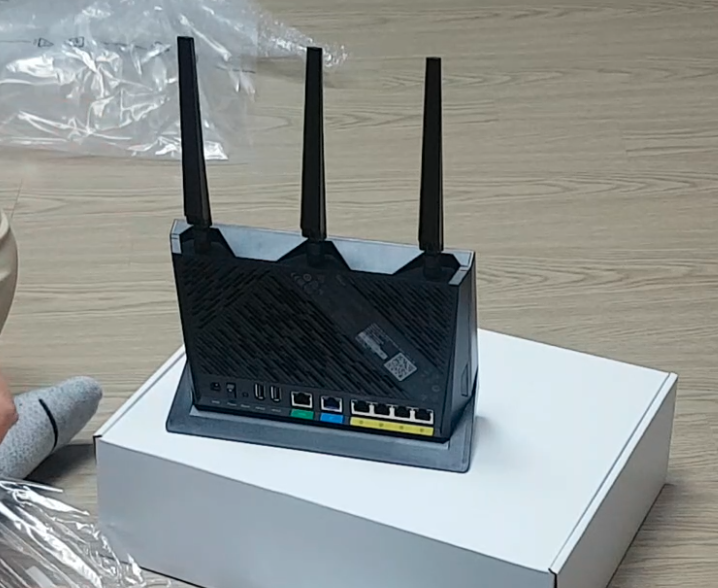 1. 싸구려 저질 LG UPLUS AP를 걷어내고 오늘의 주인공 ASUS AP를 설치해주었습니다. WAN이라고 쓰여진 부분에 인터넷 선을 연결하고요. LAN포트에 우리집 네트워크를 연결해줍니다. 그리고 전원을 키면 흰색불이 들어옵니다!