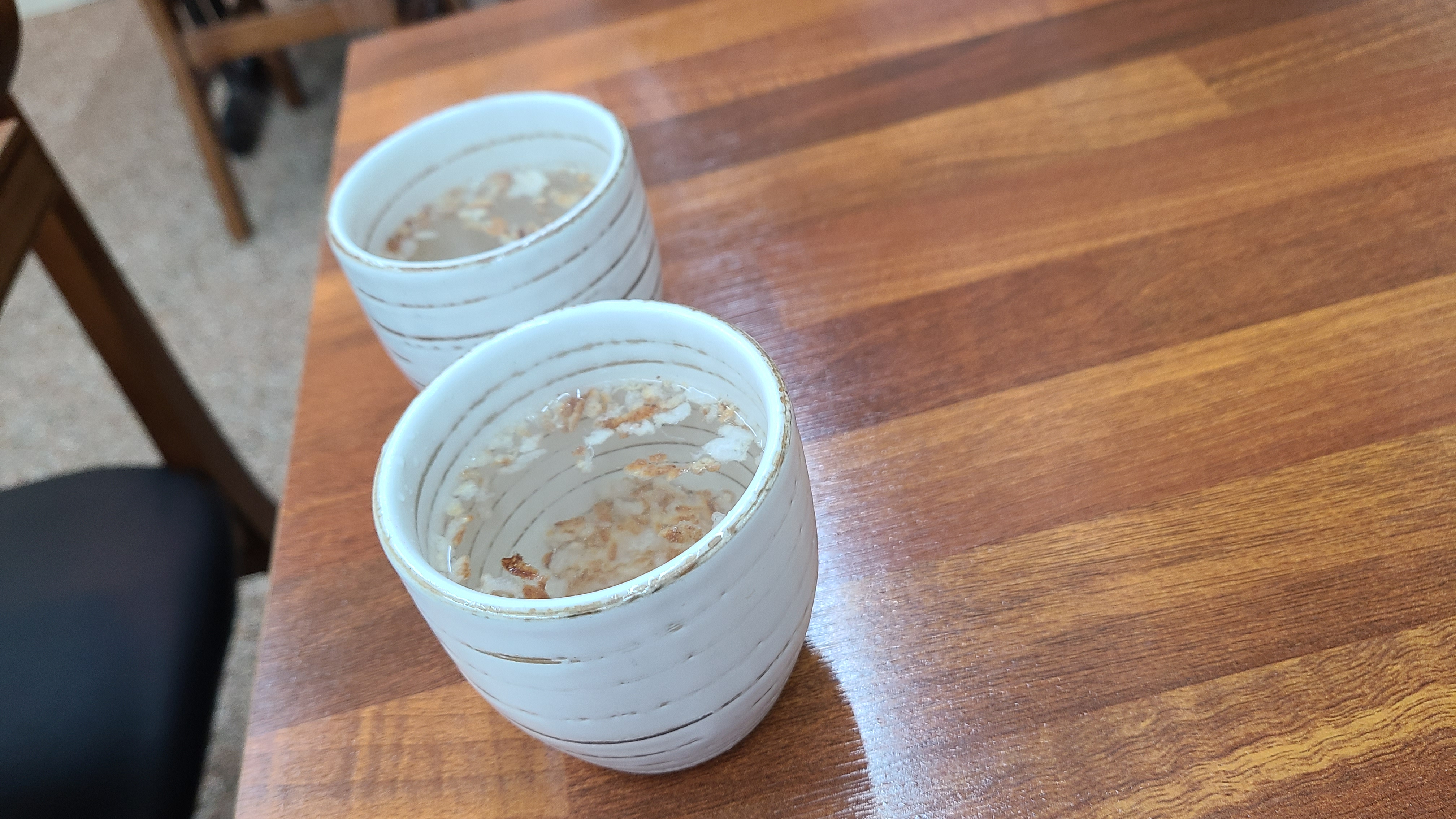 3. 오자마자 사장님이 누룽지에 뜨거운물을 주셨습니다. 배고팠던 차에 딱 적절하게 주셨네요!