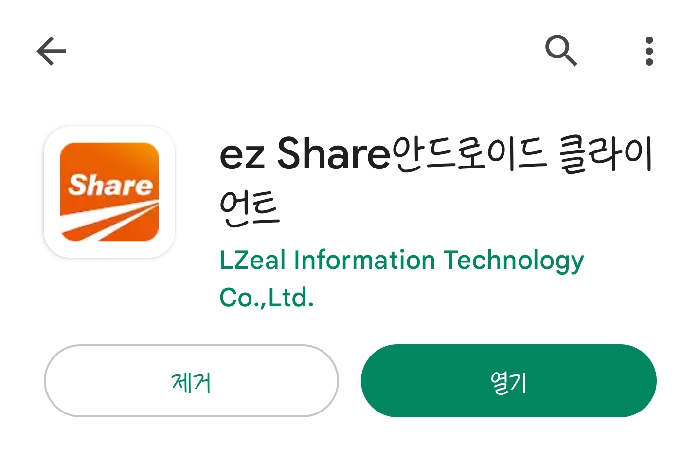 2. 구글 플레이에서 ez share 라고 검색하면 다음의 어플이 표시되는데 이것을 설치합니다.