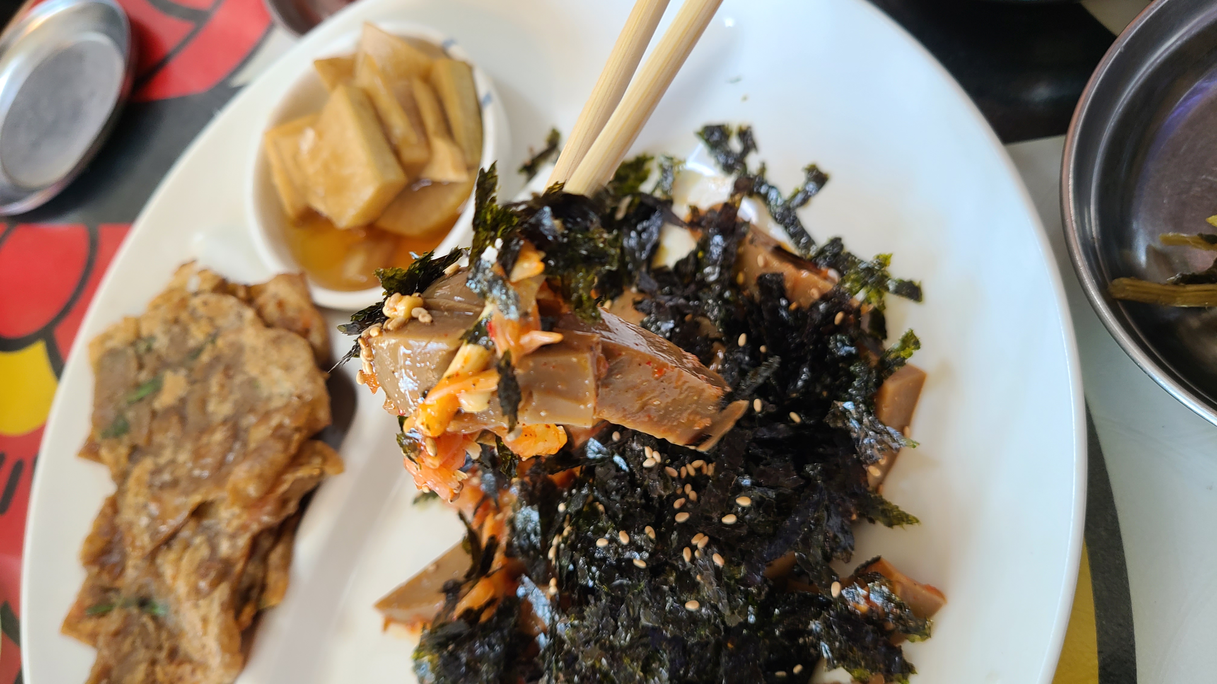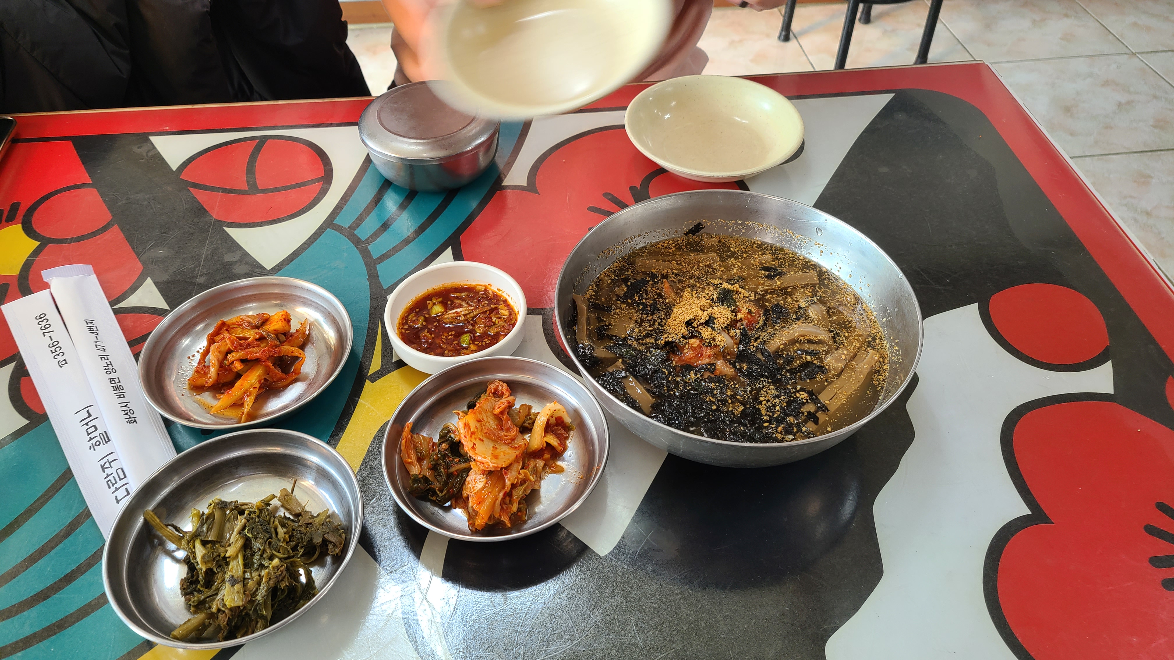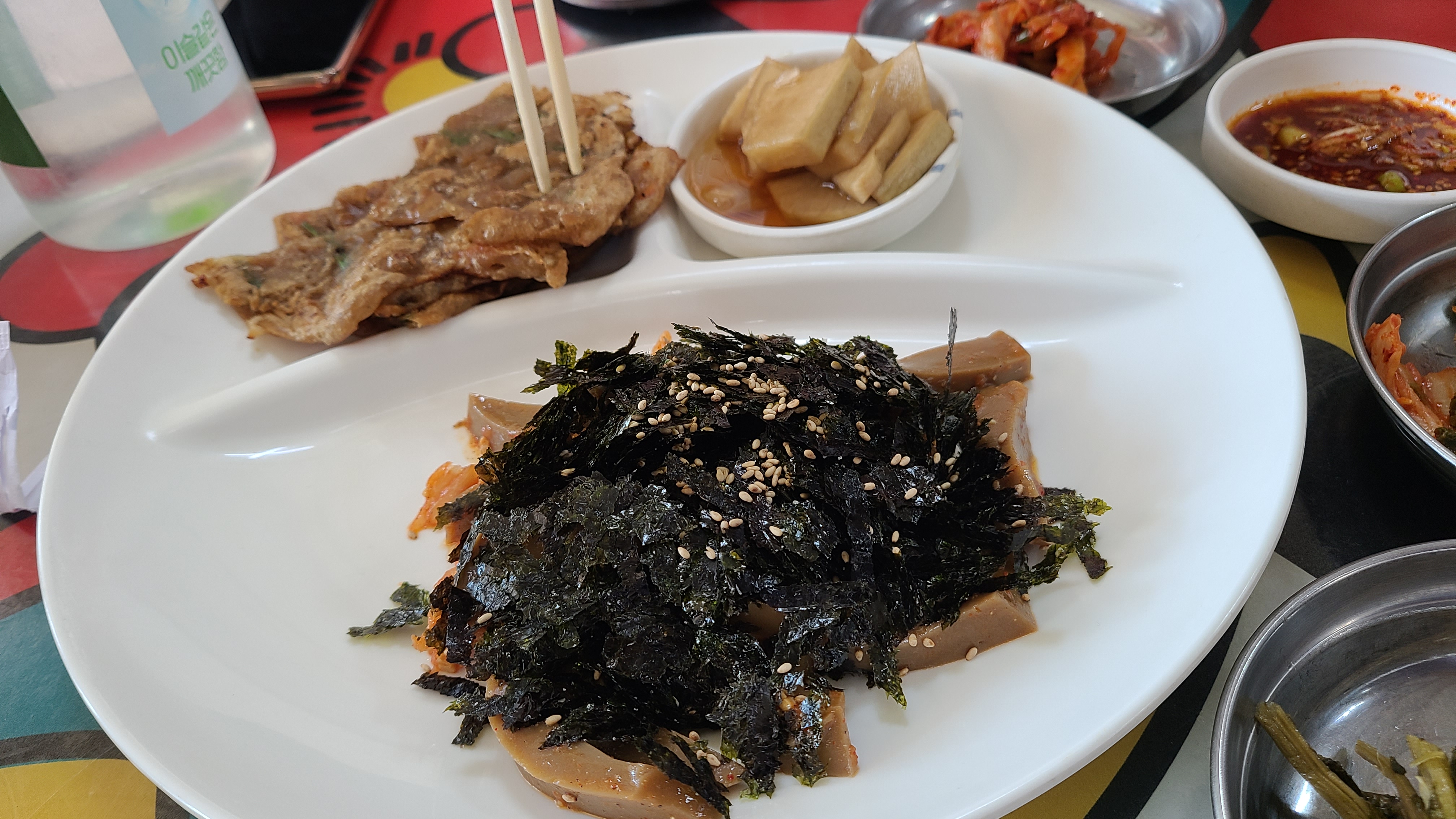 6. 냉묵밥, 반찬, 메밀전, 비빔묵, 순두부 이렇게 나오는데 정말 하나같이 다 맛있었어요. 그 중에서 메밀저하고 냉묵밥이 제일 맛있어요.