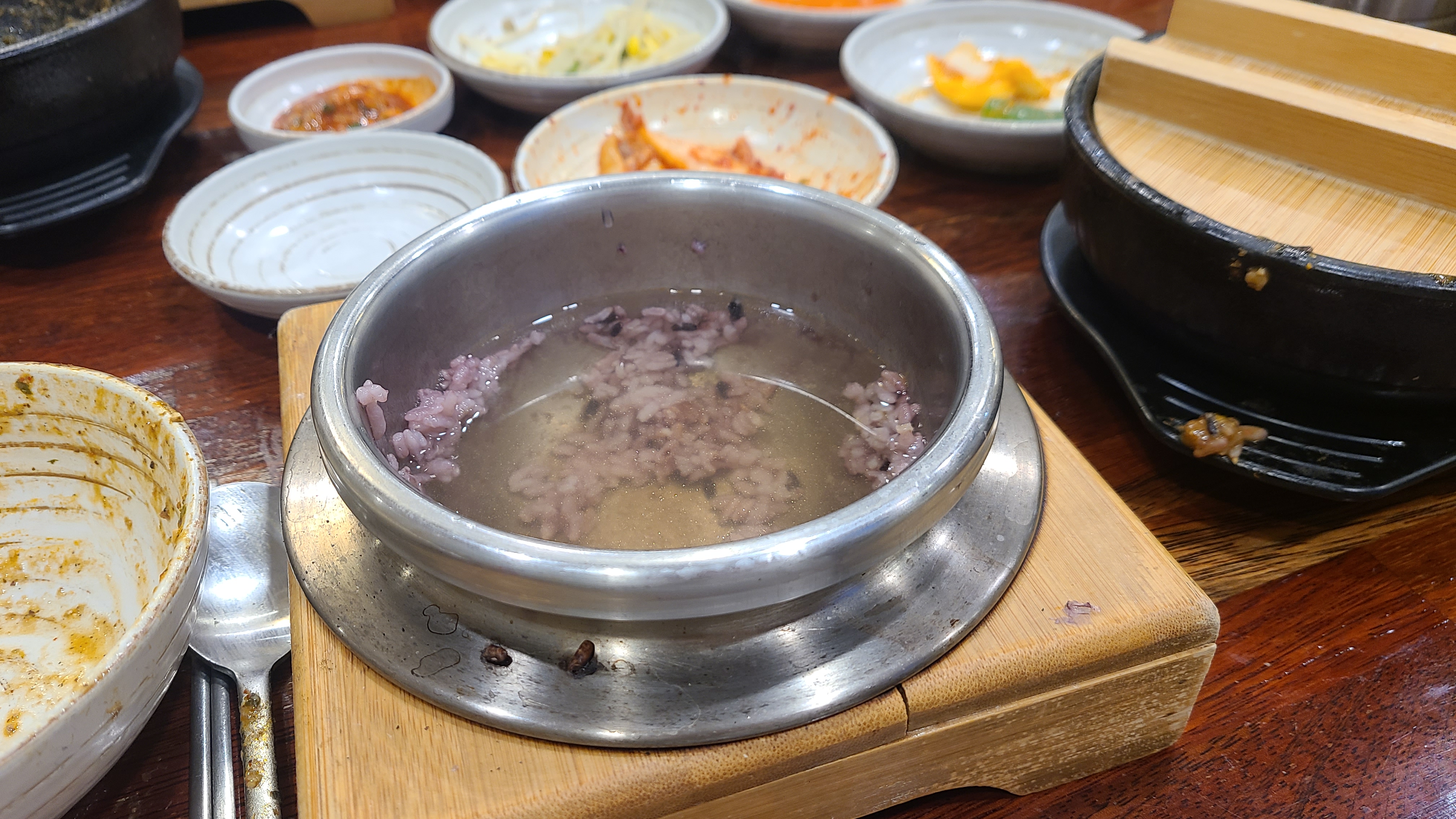4. 반찬은 김치, 깍두기 등 깔아주는데 셀프바 운영으로 막 가져다 먹을 수 있다.