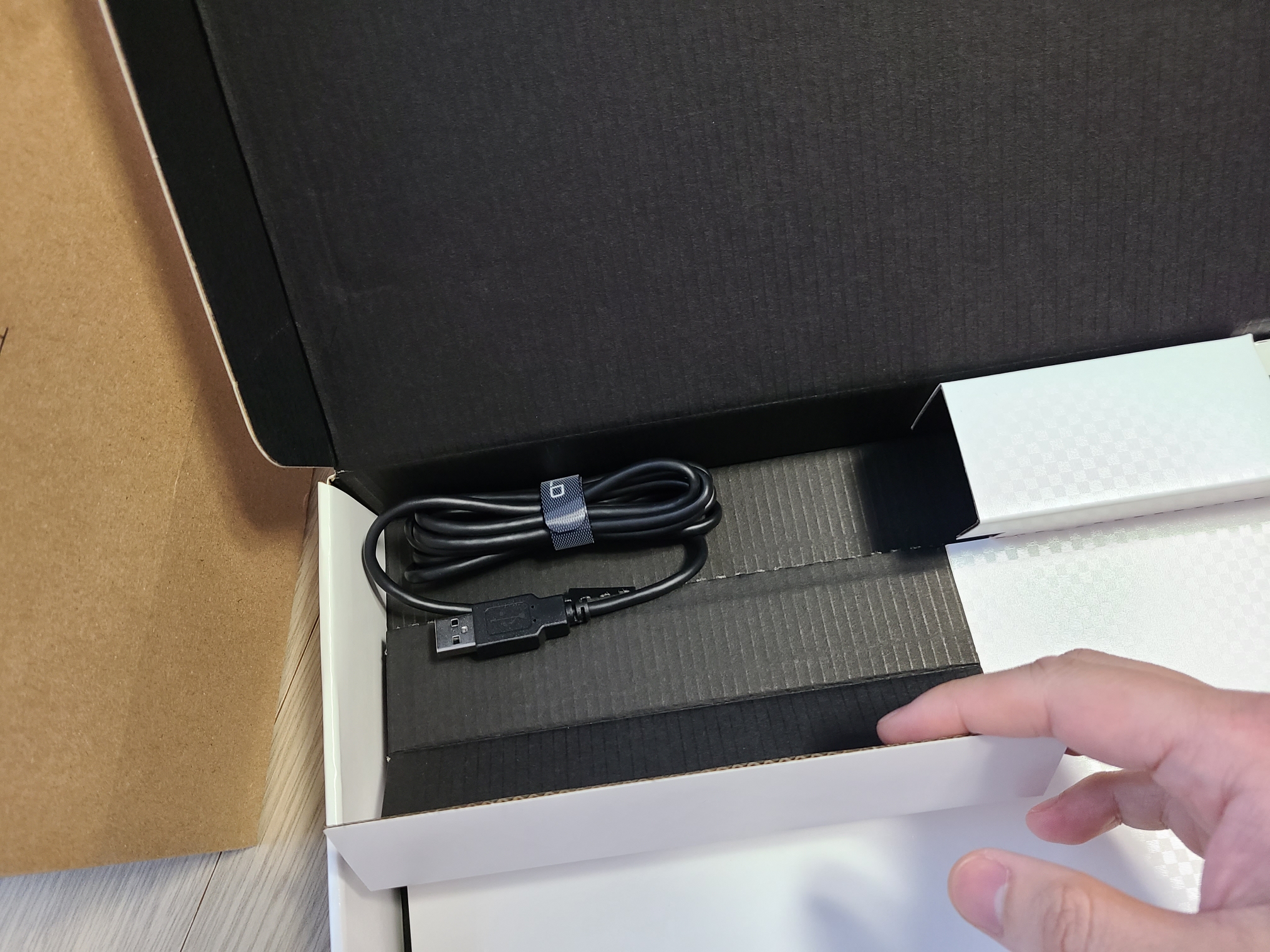 박스 안 쪽을 탐험해보니 usb 케이블과 여분 키캡, 키캡 추출기(?) 도 같이 있네요. 박스 공간 활용을 잘한것 같아요.