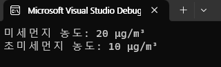Console.WriteLine($"미세먼지 농도: {fineDust.pm10Value} μg/m³");