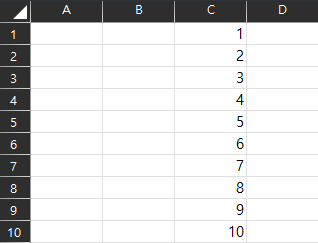 실제로 엑셀에 쓸때는 10번 반복을 하되, 엑셀에 쓰는 위치가 C1, C2, C3 이런식으로 내려가야합니다. 그래서 변수 i를 선언해주고 i값을 1씩 증가 시켜서 반복할때마다 C1,C2,C3 같이 행이 내려가게 표현을 해주어야합니다.