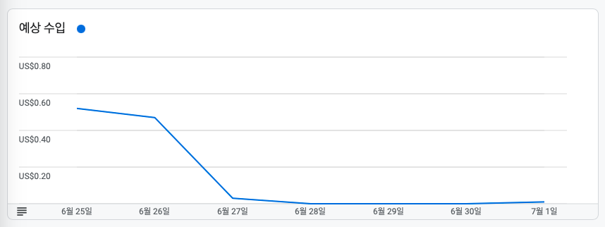 그런데 문제는 티스토리 측에서 제 구글 애드센스 광고를 나오지 않게 소스를 잘못 건든거 같더라고요. 6월 27일 기점으로 구글광고가 아예 표시되지 않는 문제가 발생했습니다. (페이지 뷰 0, 광고 뷰 0, 수익 0 ㅠㅠ)
