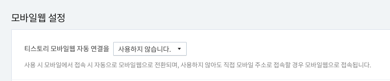 4. 블로그 관리 > 꾸미리 > 모바일 >모바일웹 설정 : 티스토리 모바일웹 자동 연결을 사용하지 않습니다. 로 설정