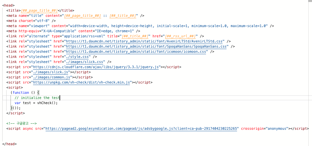 3. 블로그 관리 > 꾸미리 > 스킨편집 > html편집 > <head>와 </head> 태그 사이에 코드 붙여넣기