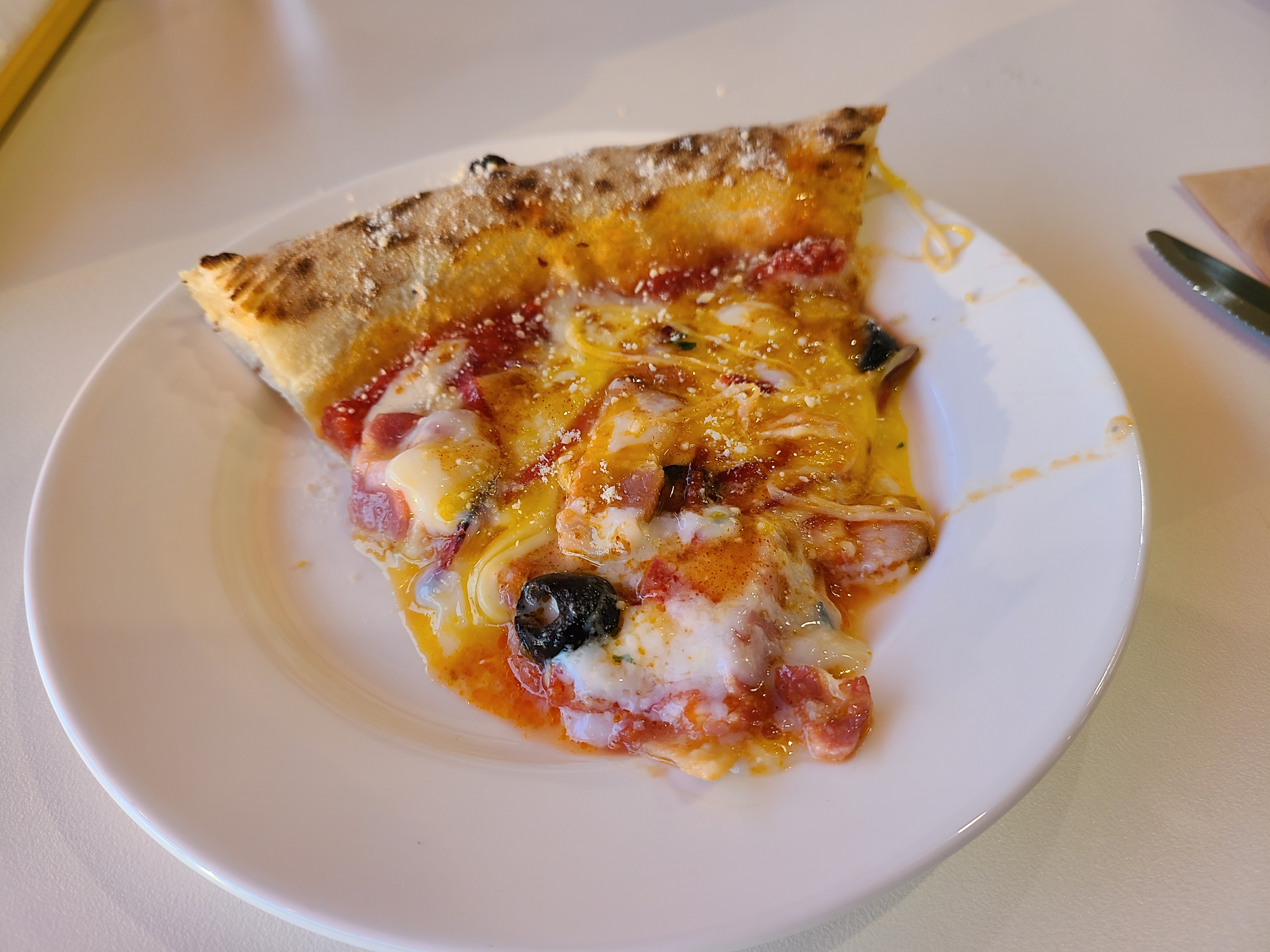 4. 피자랑 파스타, 스테이크 이렇게 주문하여고 했는데 스테이크는 재료가 없어서....못한다고..ㅠㅠ 스테이크까지 먹어줘야 끝나는 싸움인데...아쉬웠습니다. 피자가 먼저 나왔는데 특이하게 가운데 노른자가 있네요. 이걸 터뜨려서 피자에 쓰윽쓰윽 뿌려주니 고소한 맛이 더욱 강하게 느껴졌습니다.