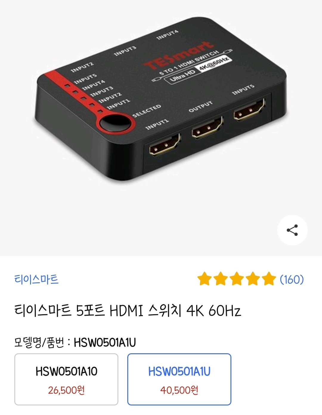 티이스마트 5포트 HDMI 스위치 4K 30Hz