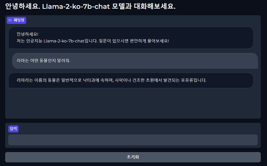 실제로 실행을 해보면 아래와 같이 답변을 하는것을 확인할 수 있습니다.