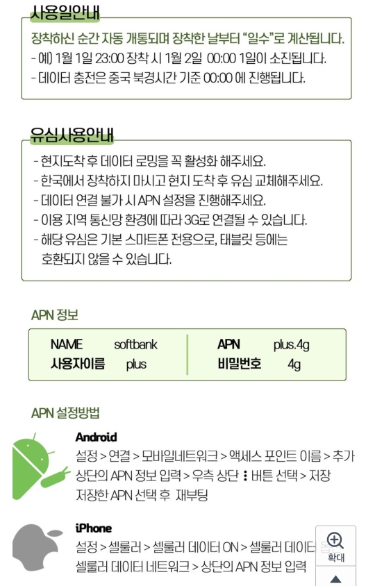 아래 설명을 보면 그냥 유심만 끼우면 되는것처럼 설명이 되어 있습니다. 2019년에 한번 사용한 경험이 있어서 뭐 어렵지 않게 사용할 것 같네요.