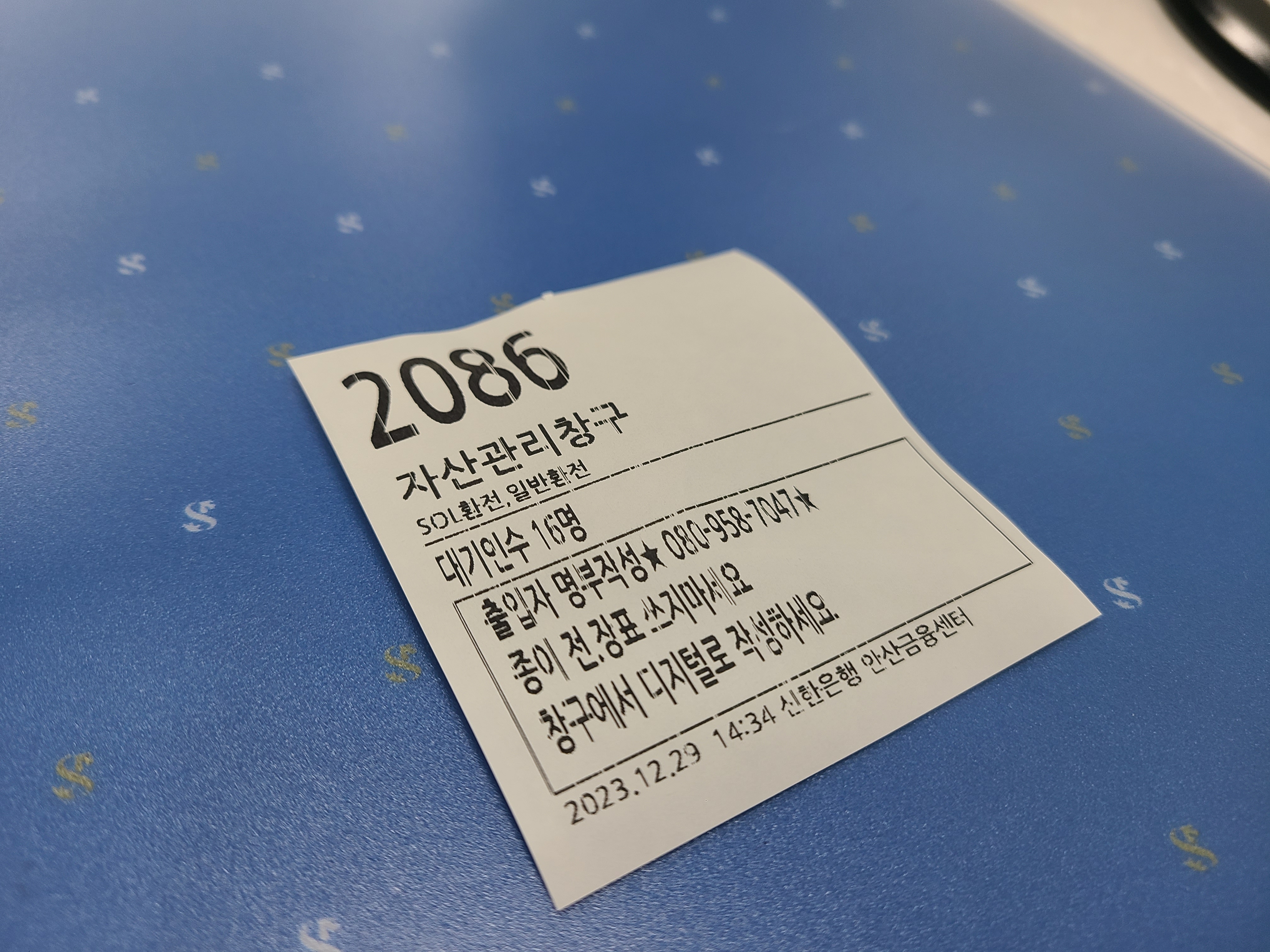외환 ATM가 있을 줄 알았는데 없어서 할 수 없이 창구로 갔습니다. 창구에는 연말 마지막 일이라서 그런지 사람이 엄청 많았습니다. 하지만 외환업무를 보는 사람은 적어서 3분 기다렸나? 바로 환전 받을 수 있었습니다.