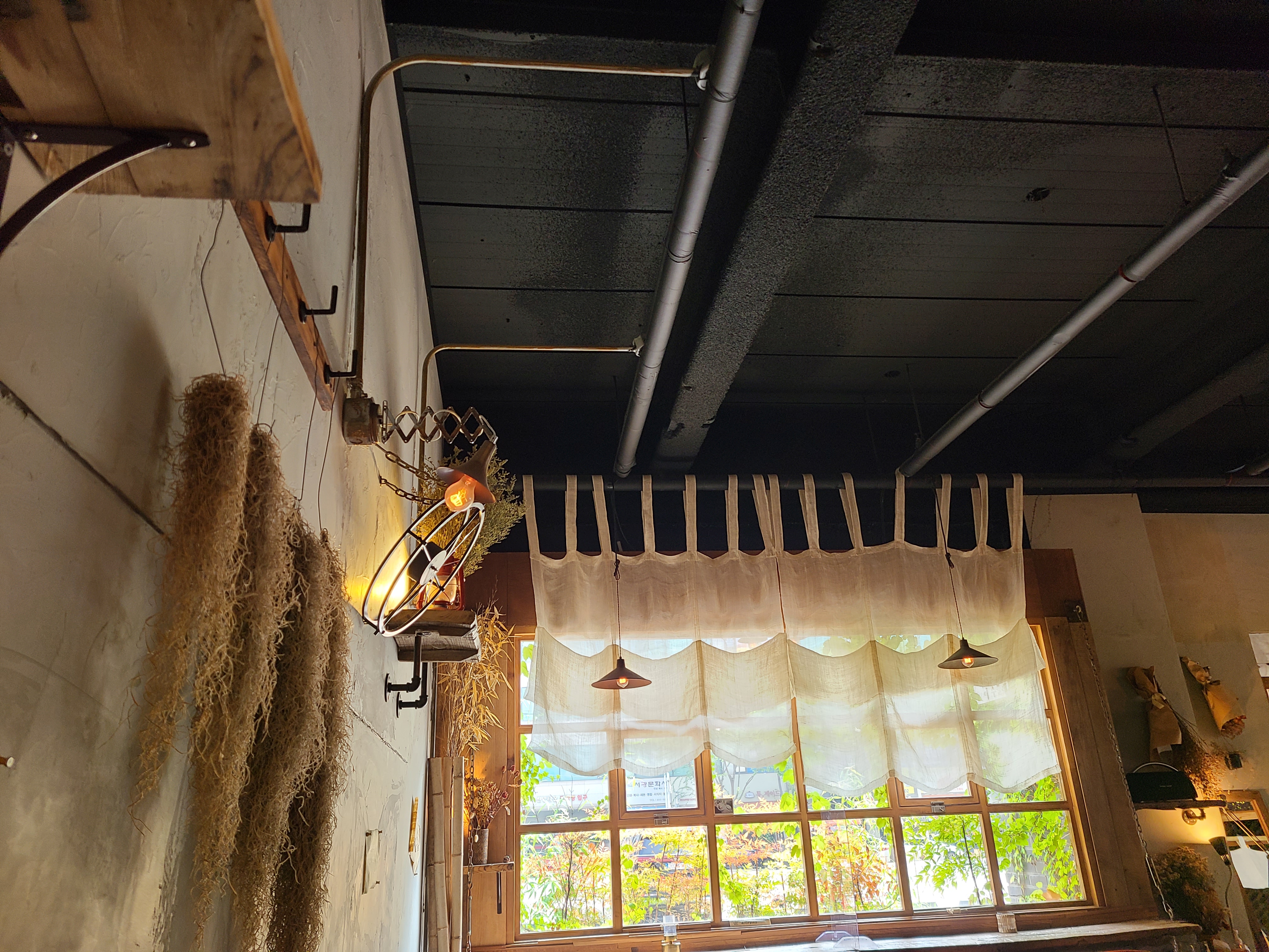 2. 어차피 카페 감성을 구경하러 온거라 상괸 없었습니다. 가게는 아기자기하게 잘 꾸며져 있었습니다. 테이블은 다 원목으로 되어 있고 매끈하지 않은 빈티지 느낌이 강했습니다. 조명은 은은한 과하지 않은 전구색으로 되어 있어서 따뜻한 느낌을 받았어요. 딱 여자들 인스타에 올리기 좋은 그런 가게 였습니다.