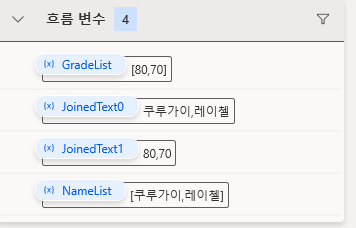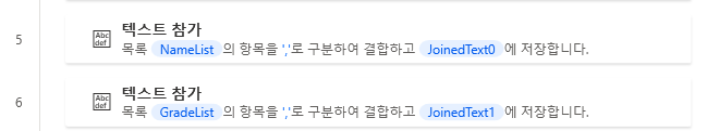 JoinedText에 ','로 구분된 문자열이 보이시죠? 이렇게 표시되면 성공입니다.