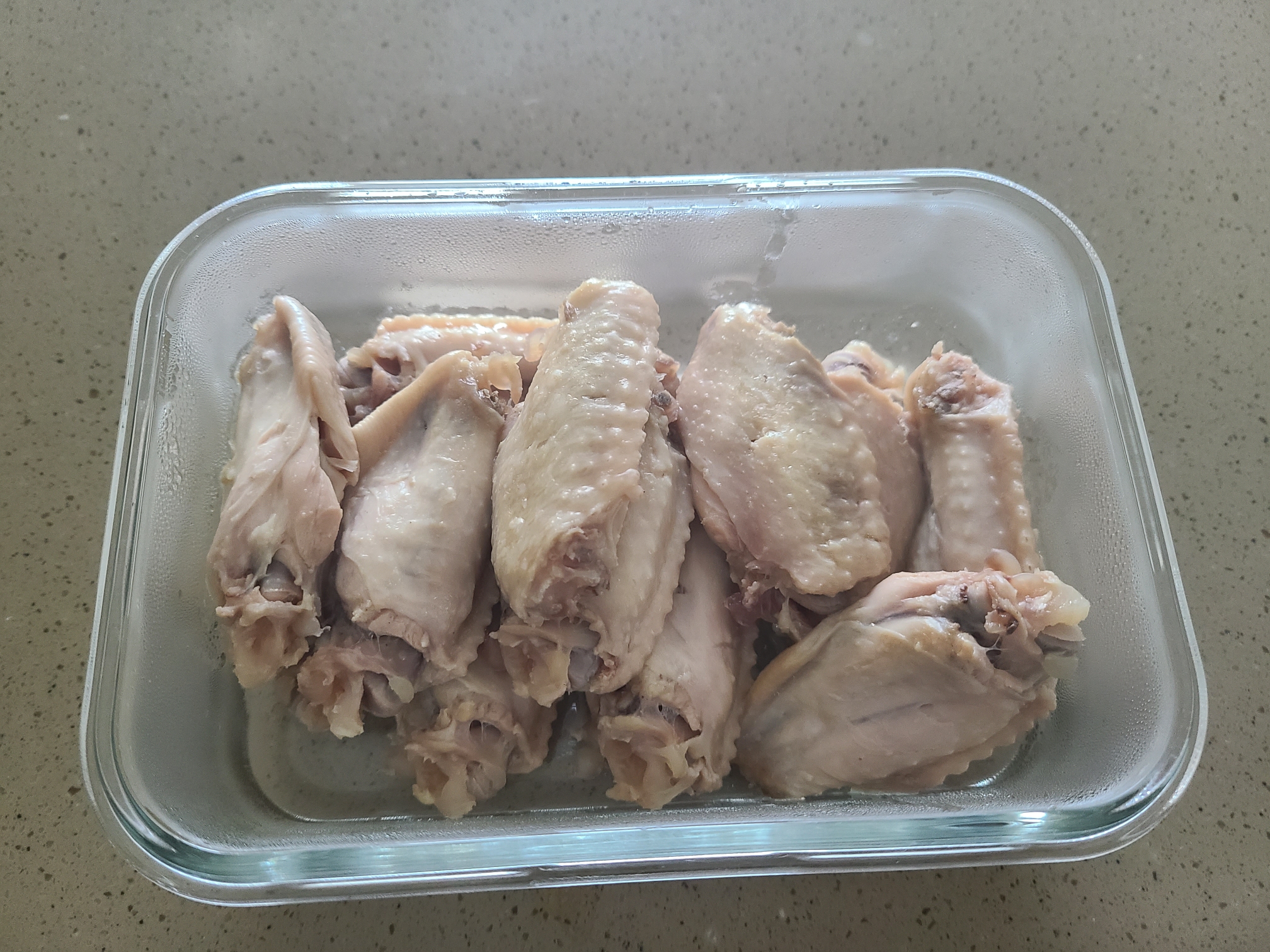 2. 닭날개 10조각을 넣습니다. 거품이 생기면 걷어냅니다.
