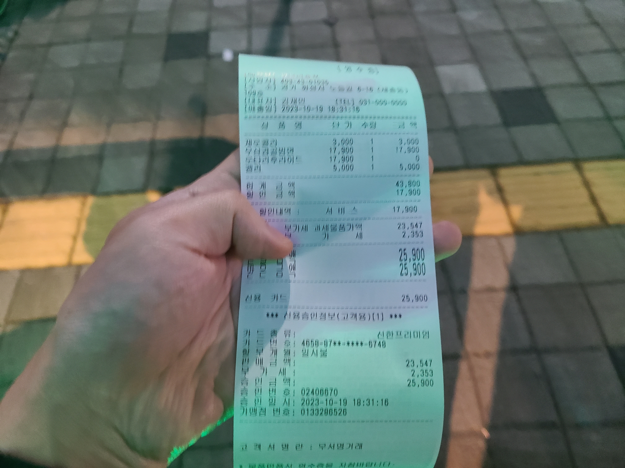 7. 치킨을 서비스로 줘서 그런지 돈은 진짜 얼마 안나왔어요.